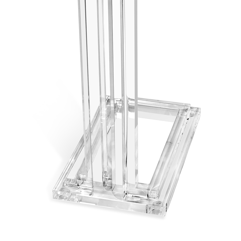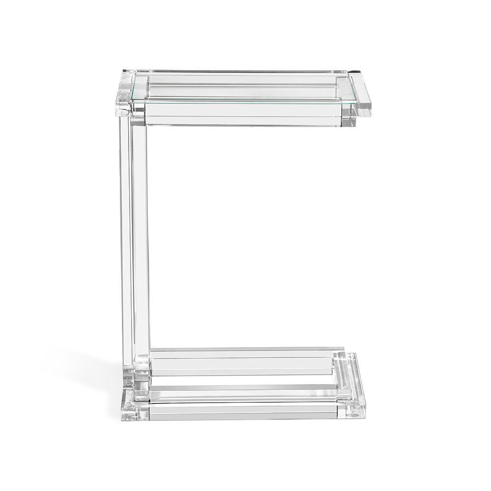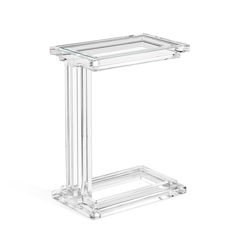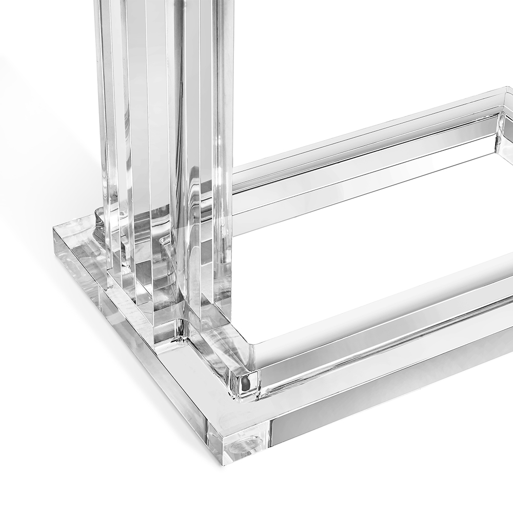Clear acrylic and crystal glass transform the Elle Hugging Table into a versatile of-the-moment statement. Intricate channeling along the legs and apron elevate this classic silhouette.
