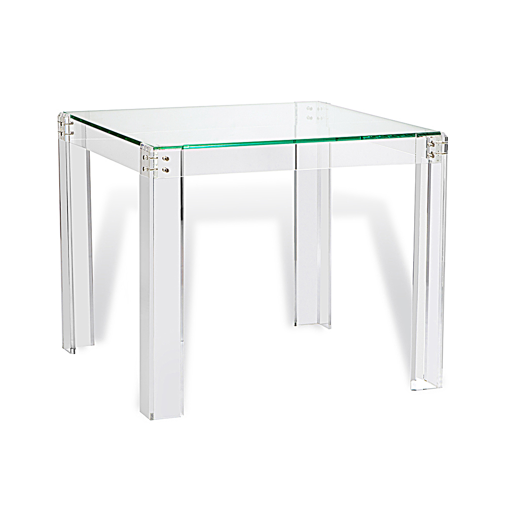 A completely classic game table becomes totally of-the-moment when it's realized in clear acrylic and glass.