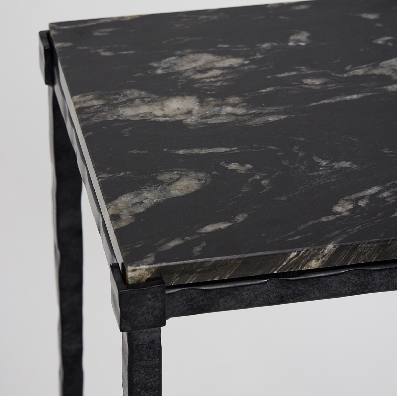 With its hammered iron base in a charcoal finish and a dusk marble top, the Reese Pedestal is discreet, but stunning.