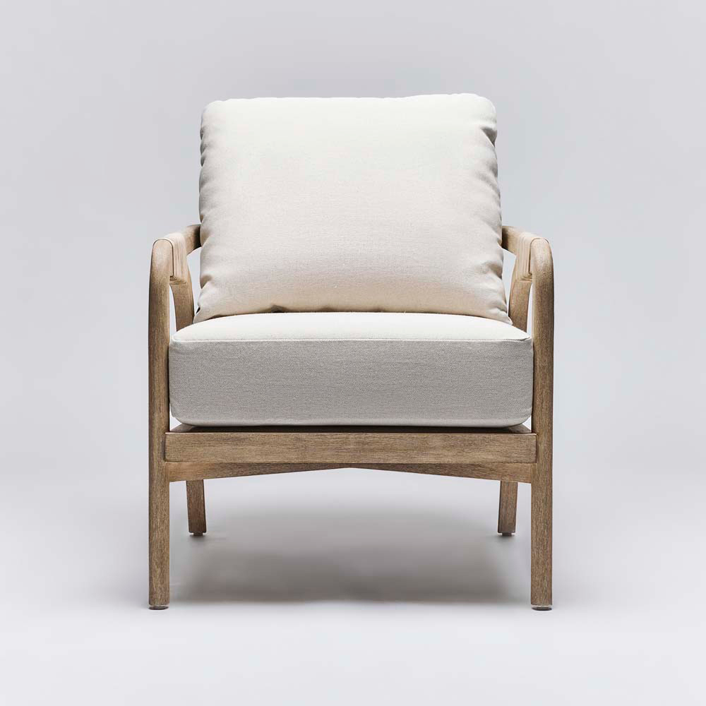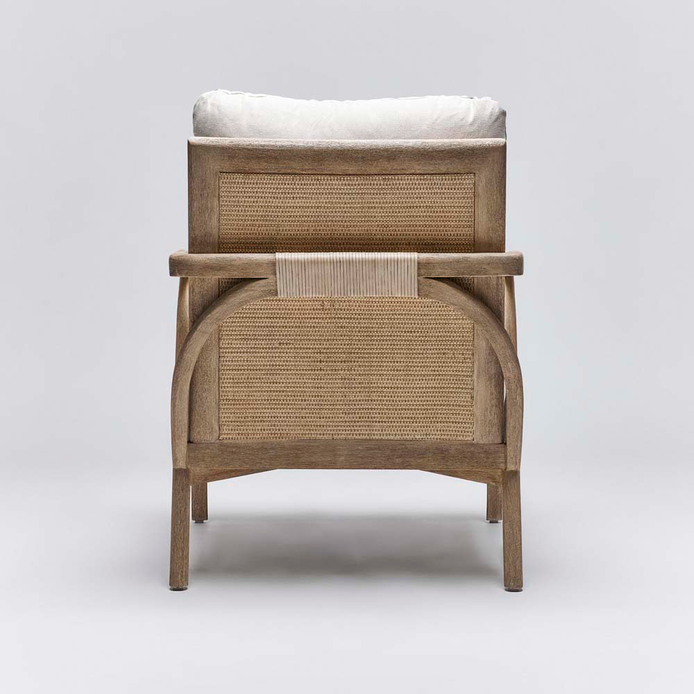 White ceruse wood paired with off white caning lends the Delray Lounge Chair an airy and inviting whiff of sophistication.