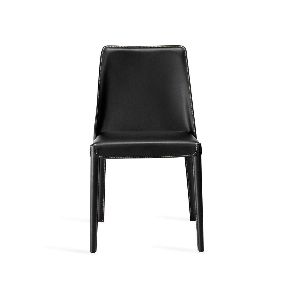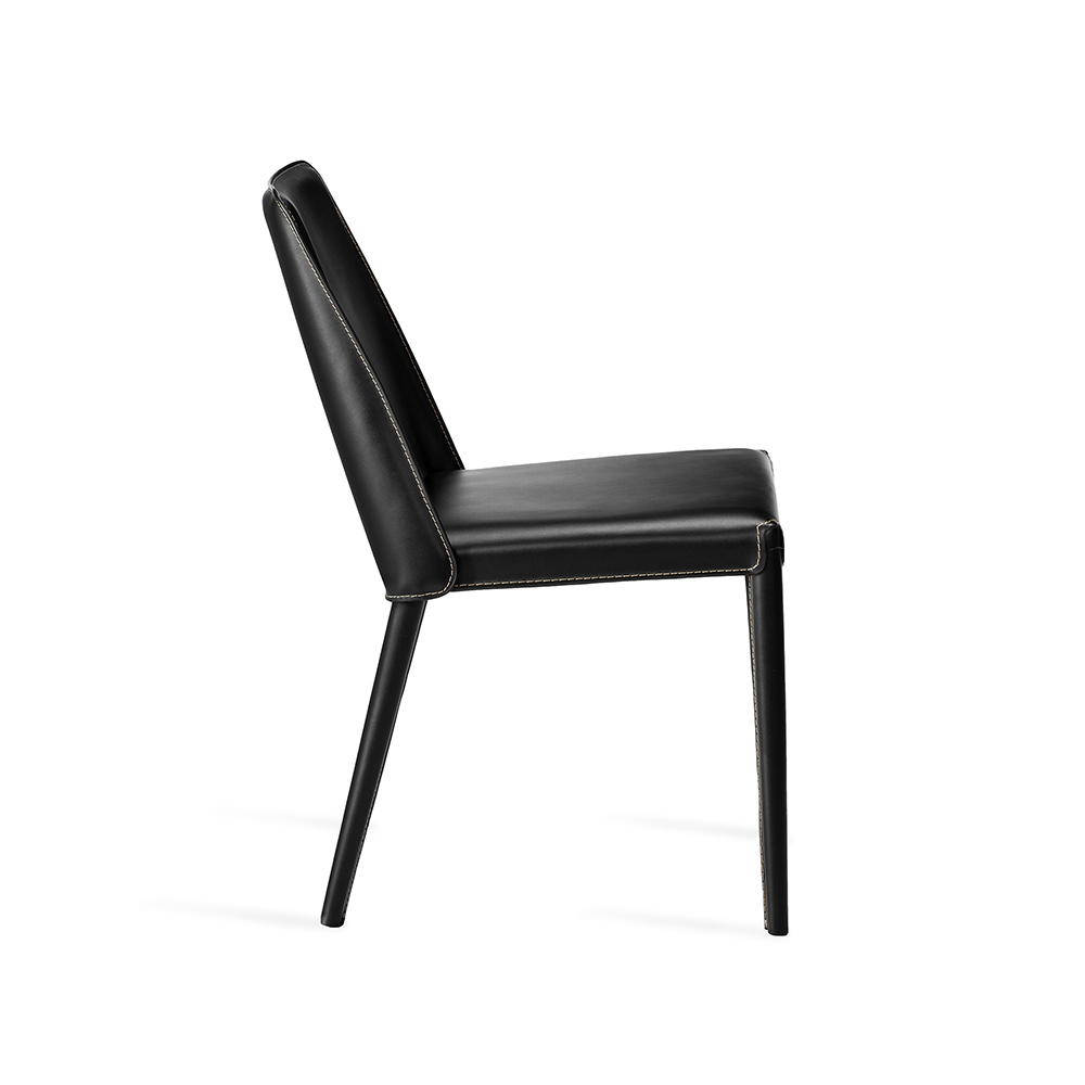 The Malin Dining Chair is chic thanks to Black Night leather and sleek lines.