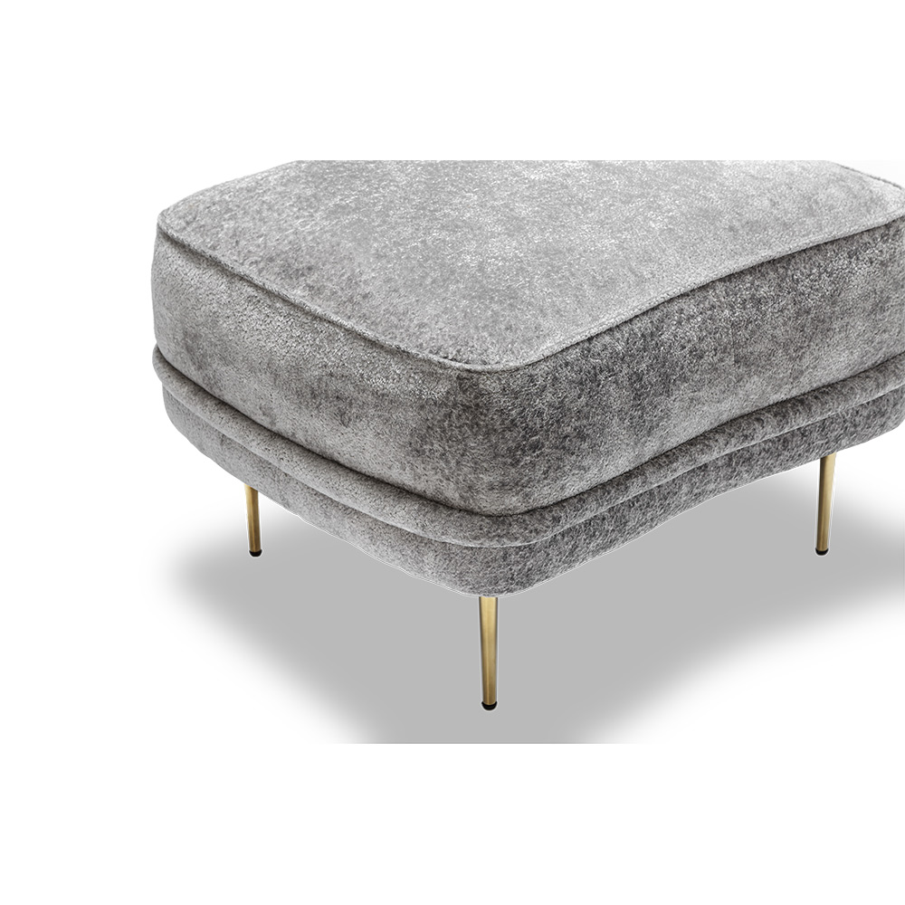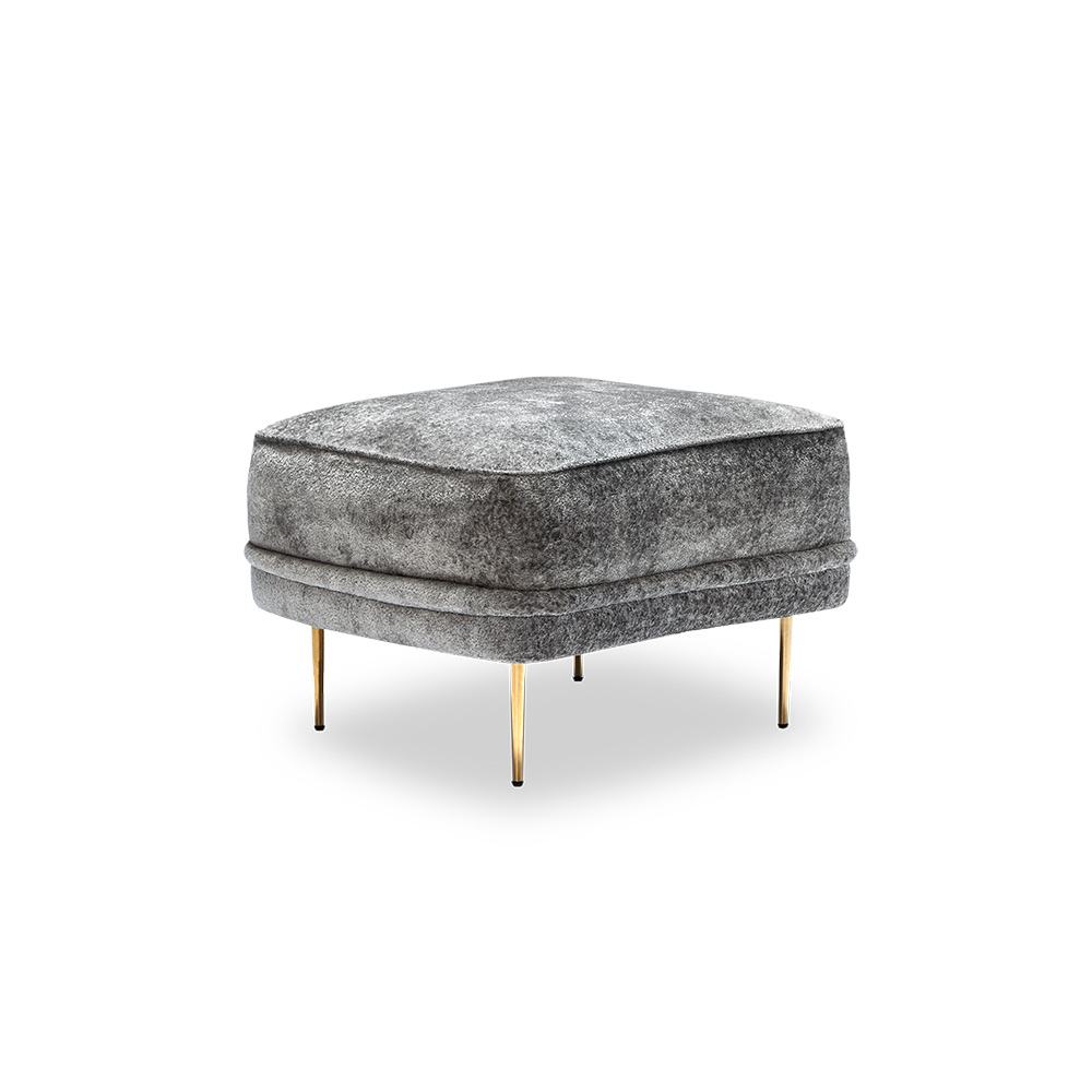 The Ava Ottoman delivers sophistication and glamorous style. Advanced unidirectional web seating suspension. Tight seat and back with premium polyurethane foam and 100% polyester fiber. Choice of acrylic, wood, stainless steel, brass, or gunmetal legs. Available in Interlude Home Custom Upholstery fabrics, COM, or COL.