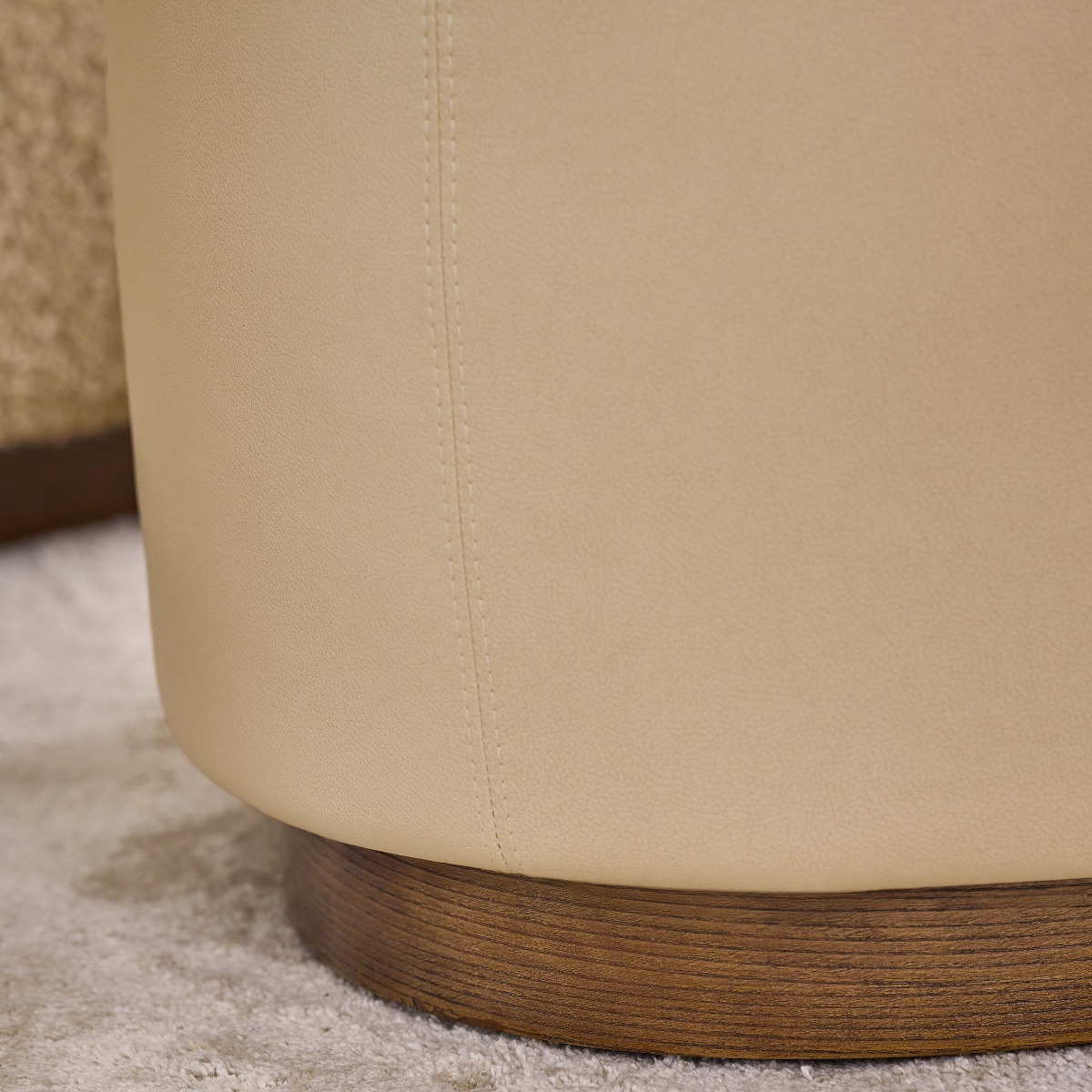 The Dana Ottoman with a wooden base is a captivating option that delivers sophistication and glamorous style. All hardwood frame with interlocking construction with premium polyurethane foam and 100% polyester fiber. Wood base available in various finishes. Available in Interlude Home Custom Upholstery fabrics, COM, or COL.