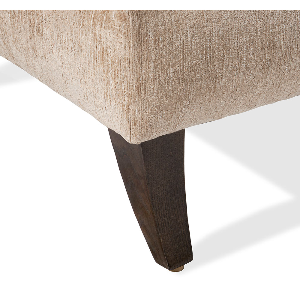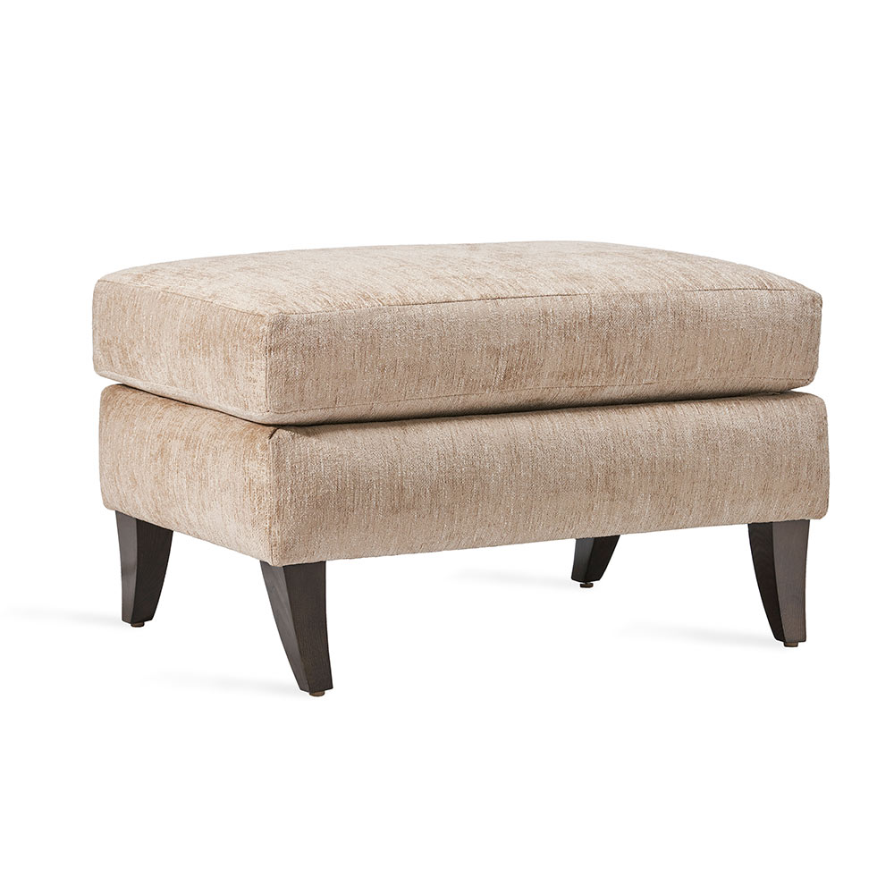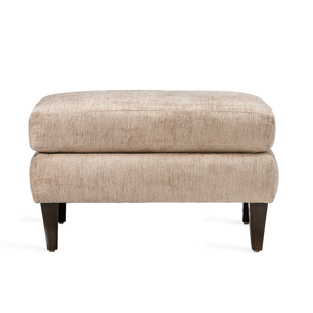 Solid wood legs add natural warmth to the Kelsey Ottoman. All hardwood frame with interlocking construction. Advanced unidirectional web seating suspension. Loose seat cushion with premium polyurethane foam and 100% polyester fiber. Wood legs available in various finishes. Available in Interlude Home Custom Upholstery fabrics, COM, or COL.
