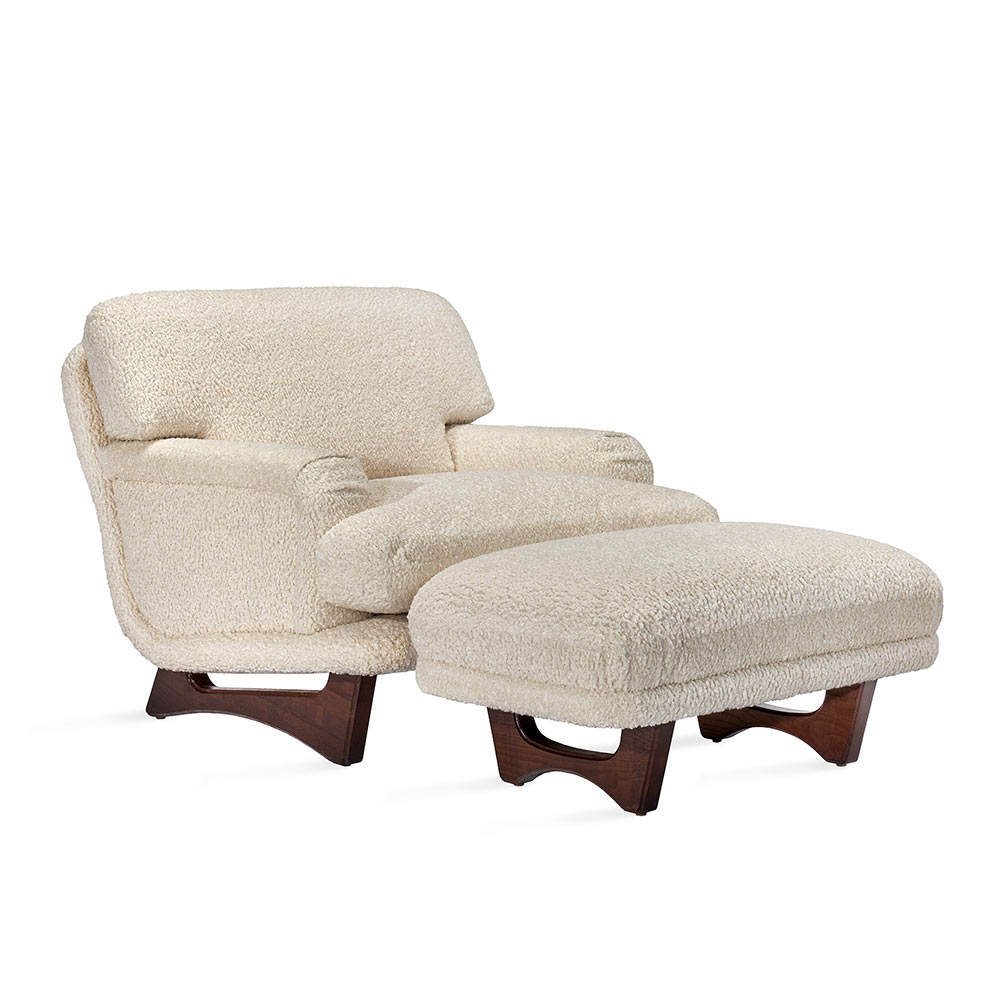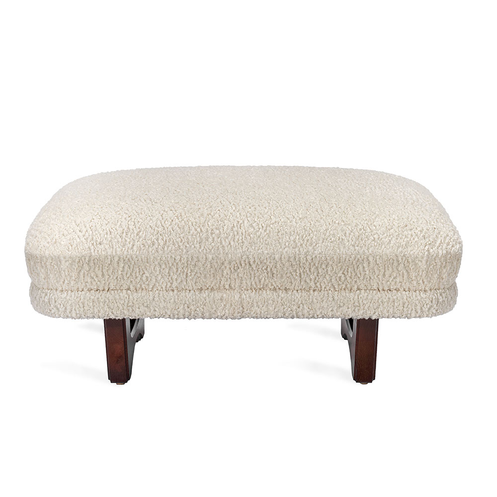 Art Deco-inspired and stunningly glamorous, the Preston Ottoman in 39008-02 fabric evokes sophistication. All hardwood frame with interlocking construction. Advanced comfort spring suspension. Loose seat with premium polyurethane foam and 100% polyester fiber. Wood legs. Custom fabric selection available.