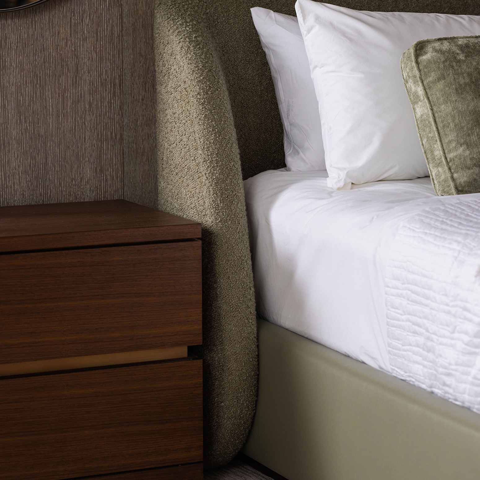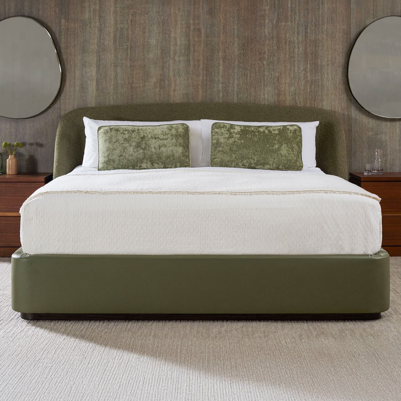 With a wraparound headboard that's as inviting as it is sophisticated, the Calista King Bed makes rest, chic.