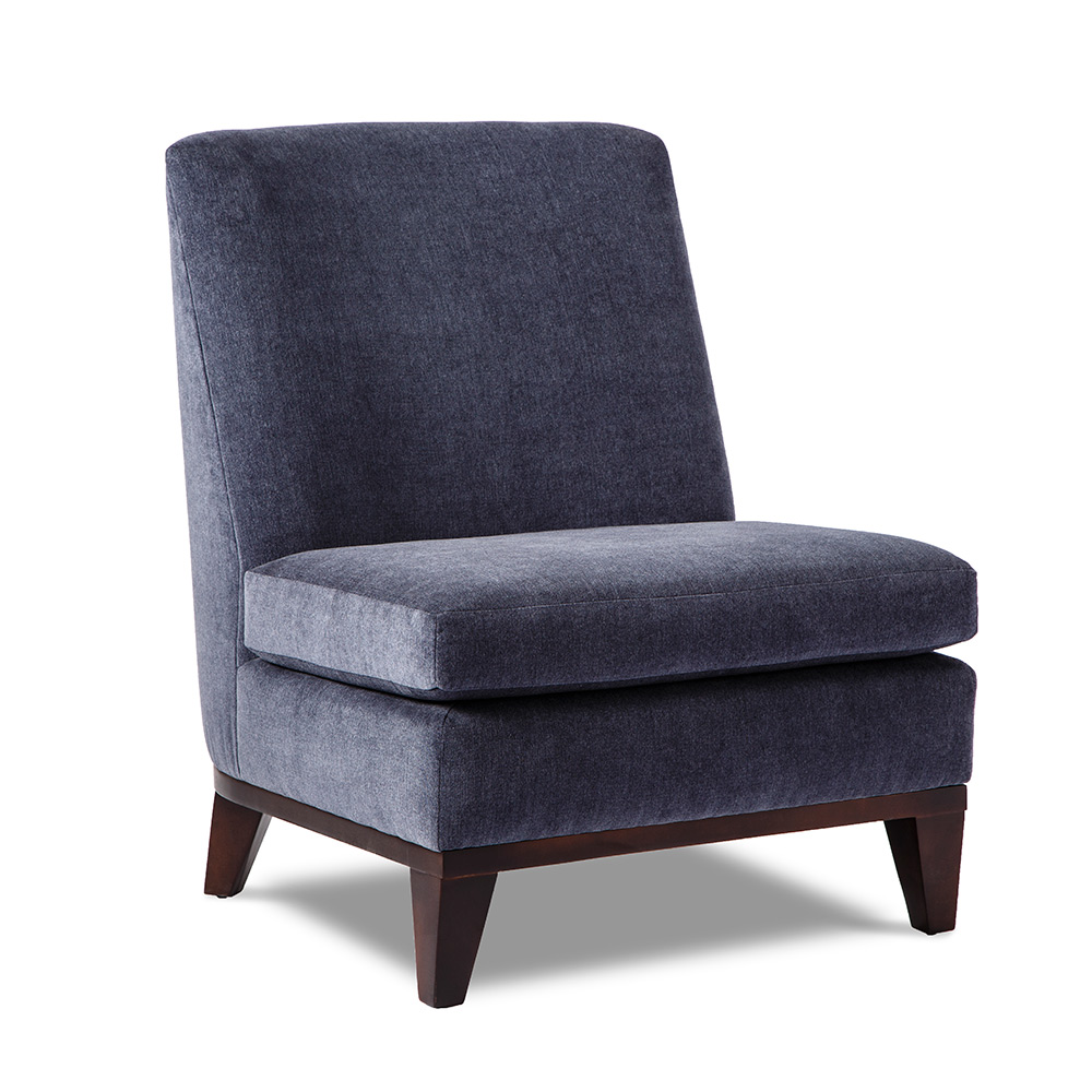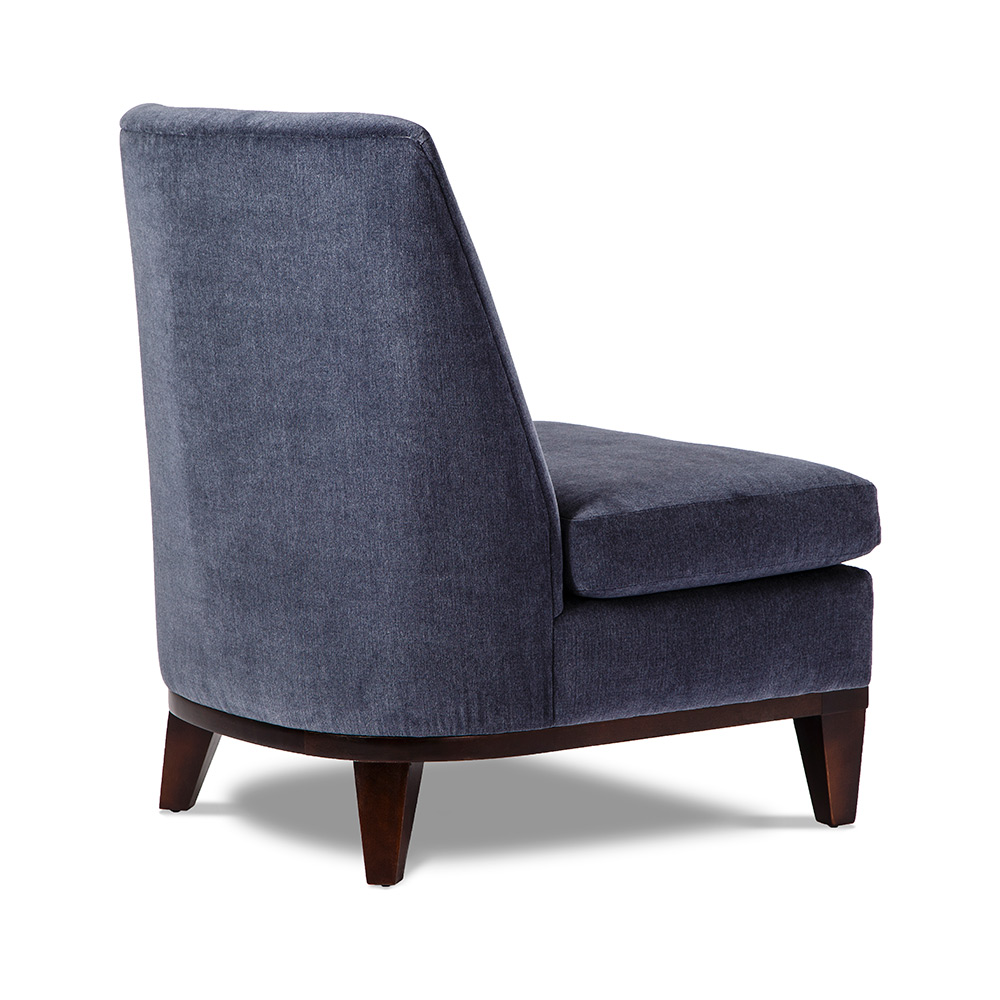 A fresh take on a classic slipper chair, the Belinda Chair is a clean-lined, versatile piece that adds a bit of polish to any seating arrangement. All hardwood frame with interlocking construction. Advanced unidirectional web seating suspension. Loose seat cushion and tight back with premium polyurethane foam and 100% polyester fiber. Wood base and legs available in various finishes. Available in Interlude Home Custom Upholstery fabrics, COM, or COL.