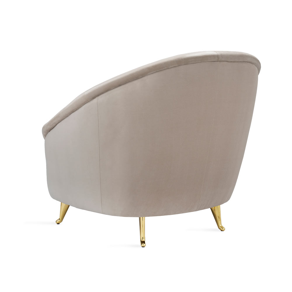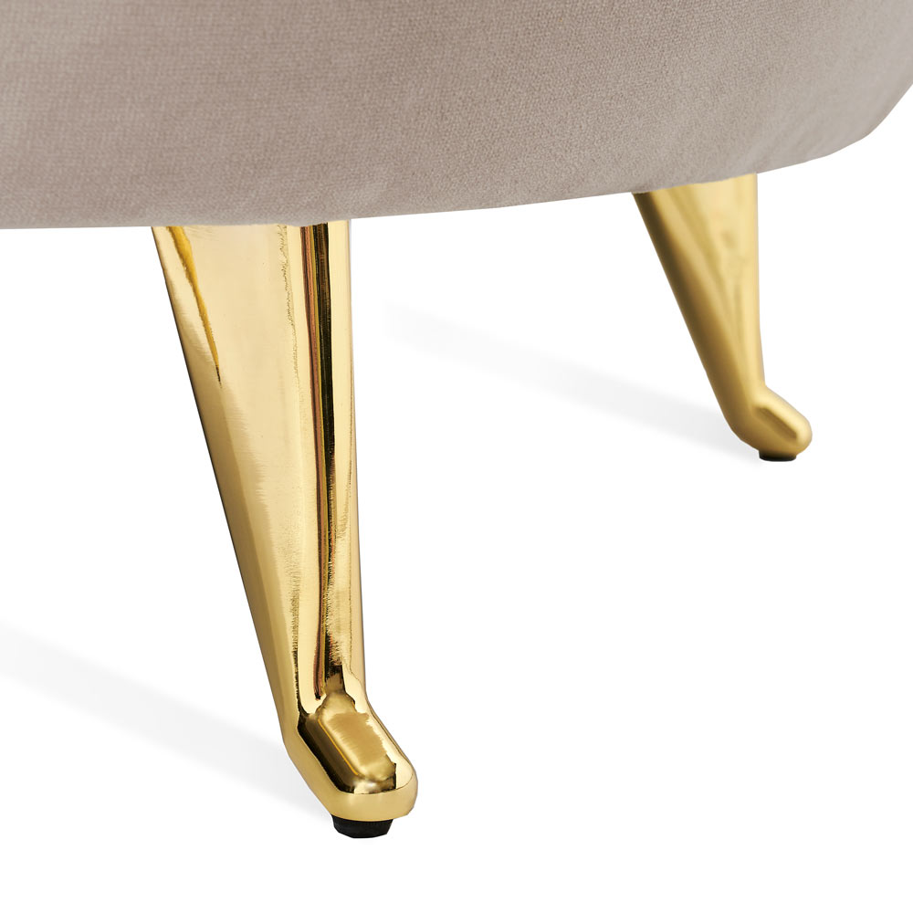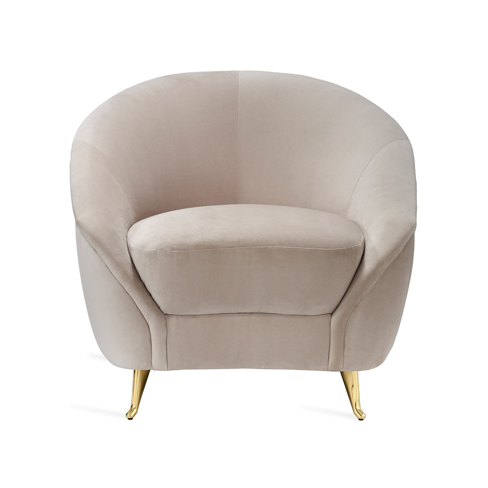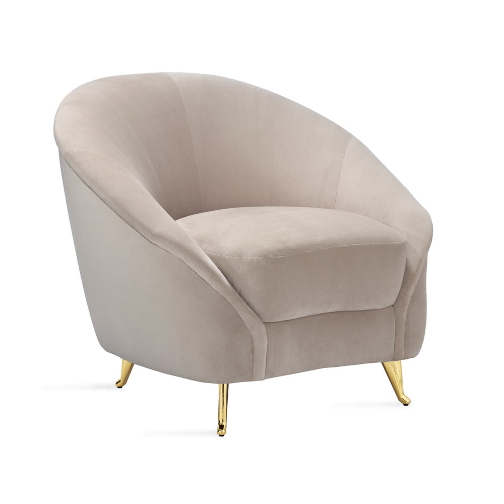 The Gia Chair delivers sophistication and glamorous style. All hardwood frame with interlocking construction. Advanced unidirectional web seating suspension. Tight seat and back with premium polyurethane foam and 100% polyester fiber. Available with stainless steel, shiny brass, or gunmetal legs. Custom fabric selection available.