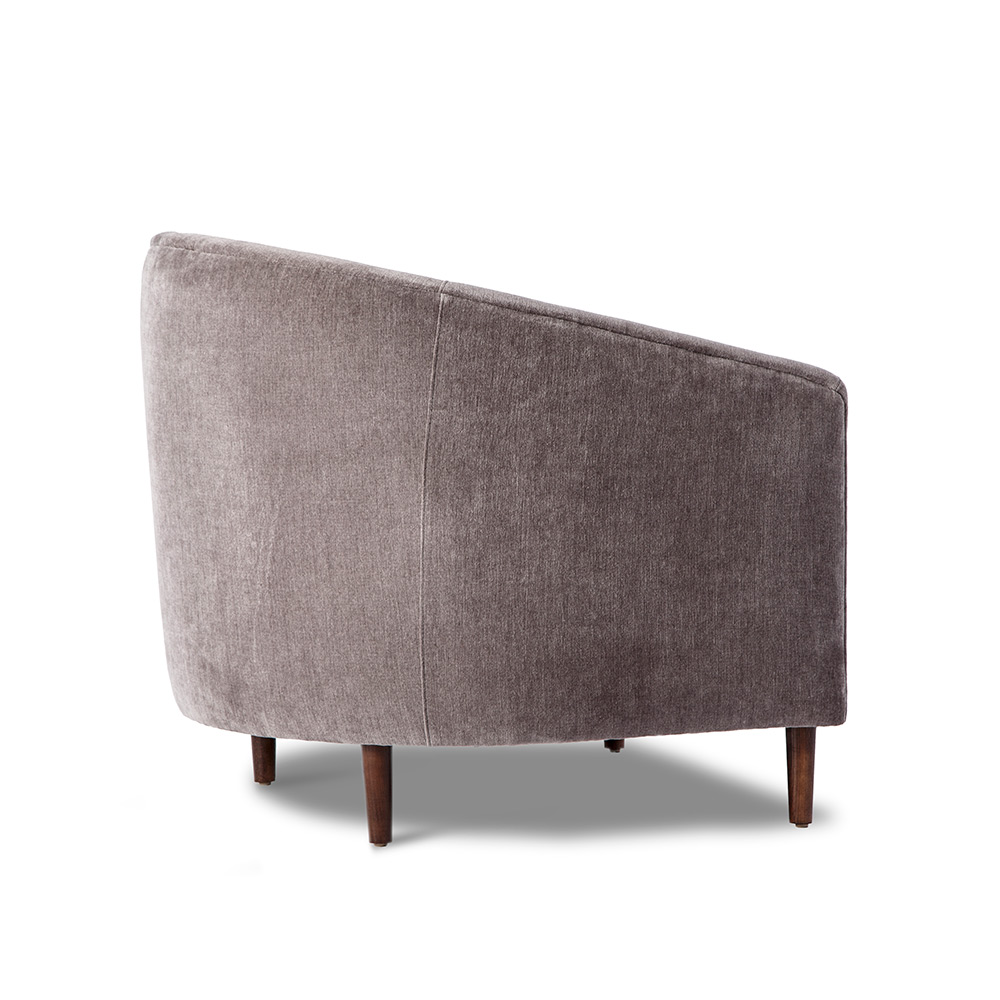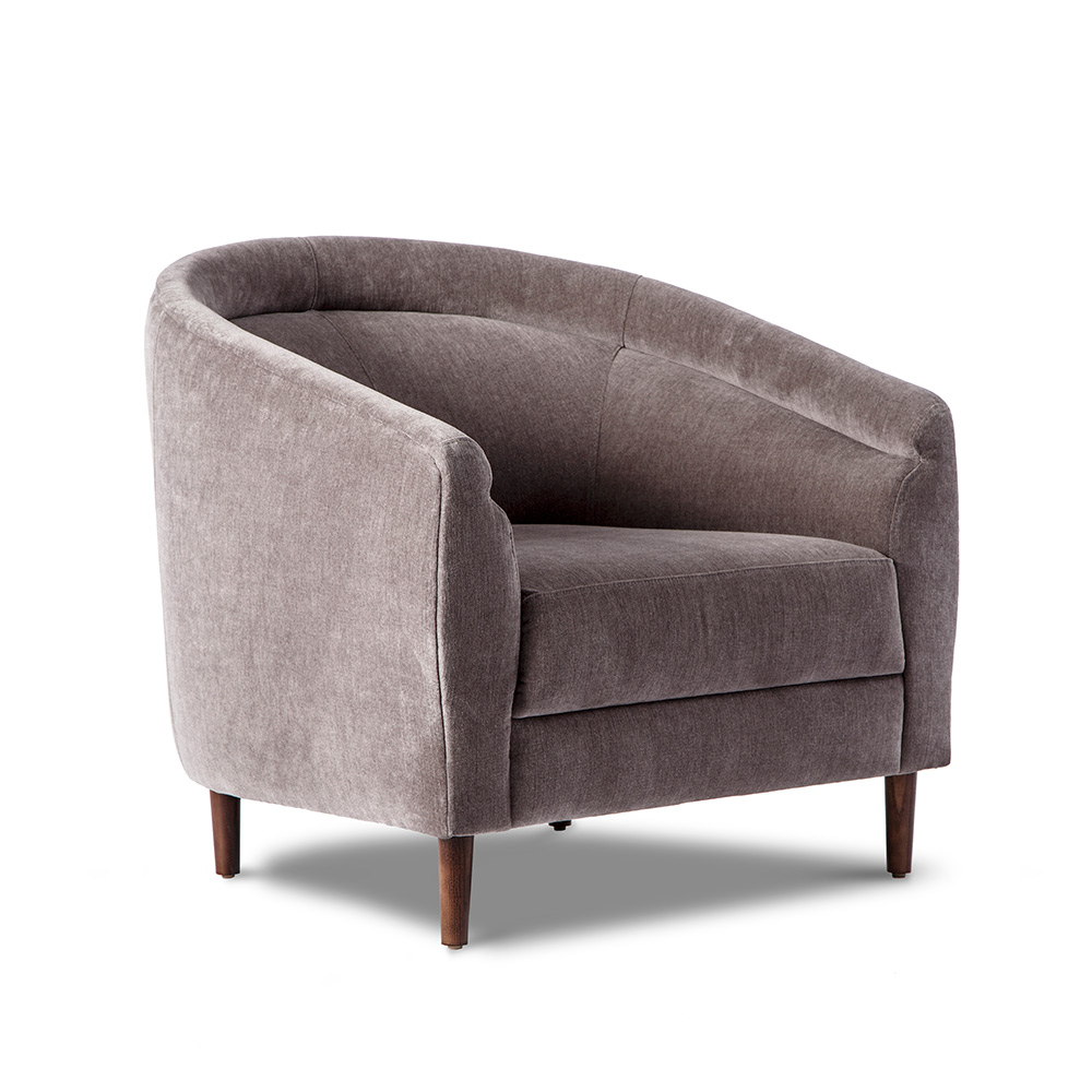 So inviting, the curved Capri Lounge Chair offers a cocoon of comfort mixed with luxurious, unbeatable style. All hardwood frame with interlocking construction. Advanced unidirectional web seating suspension. Tight seat cushions and tight back cushions with premium polyurethane foam and 100% polyester fiber. Choice of acrylic, brass, gunmetal or wood legs in various finishes. Available in Interlude Home Custom Upholstery fabrics, COM, or COL.