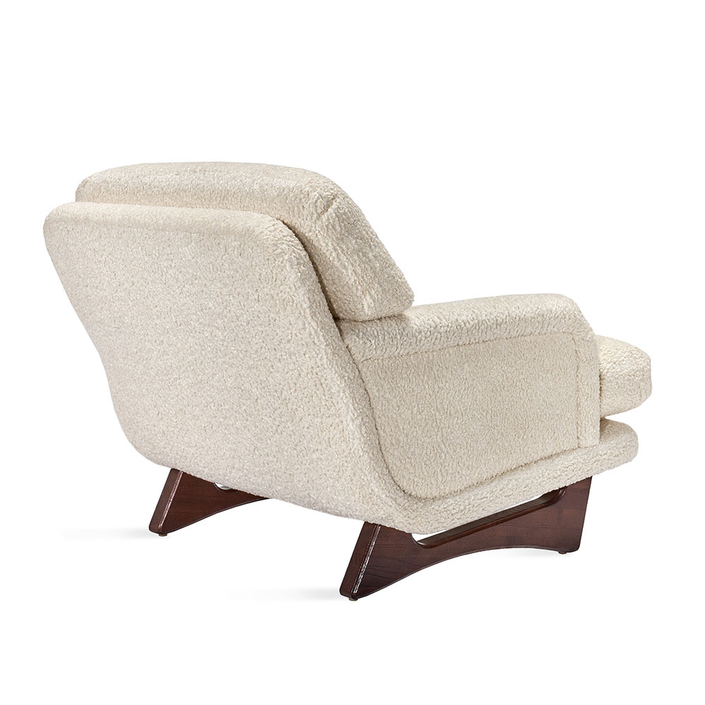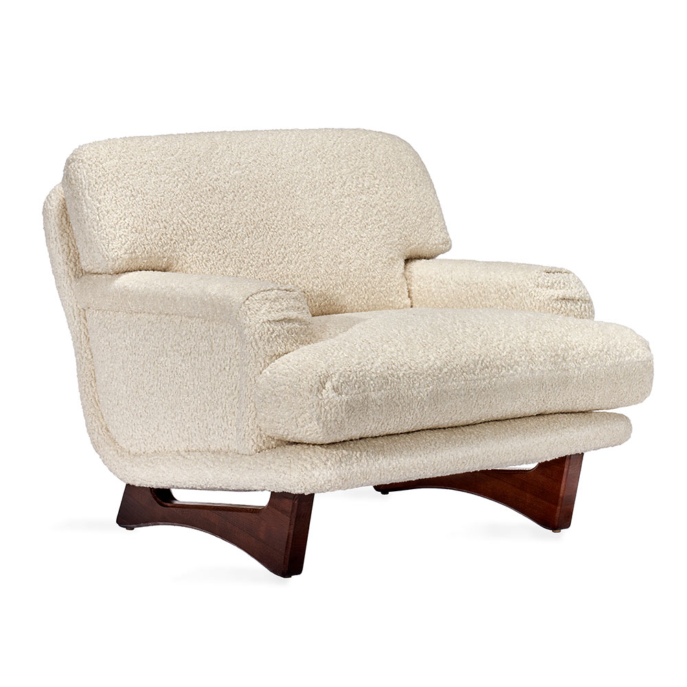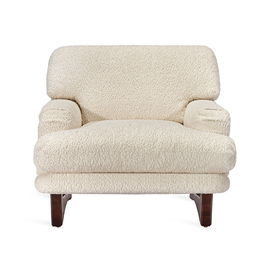 Art Deco-inspired and stunningly glamorous, the Preston Chair in 47331-29 fabric evokes sophistication. All hardwood frame with interlocking construction. Advanced comfort spring suspension. Loose seat and tight back with premium polyurethane foam and 100% polyester fiber. Wood legs. Custom fabric selection available.
