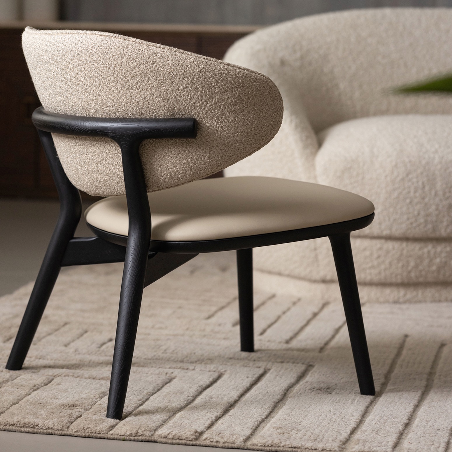 With an oak frame in a matte black finish, upholstered in your preferred covering, the Soren Lounge Chair boasts versatile, sublime midcentury vibes that pair with any style.