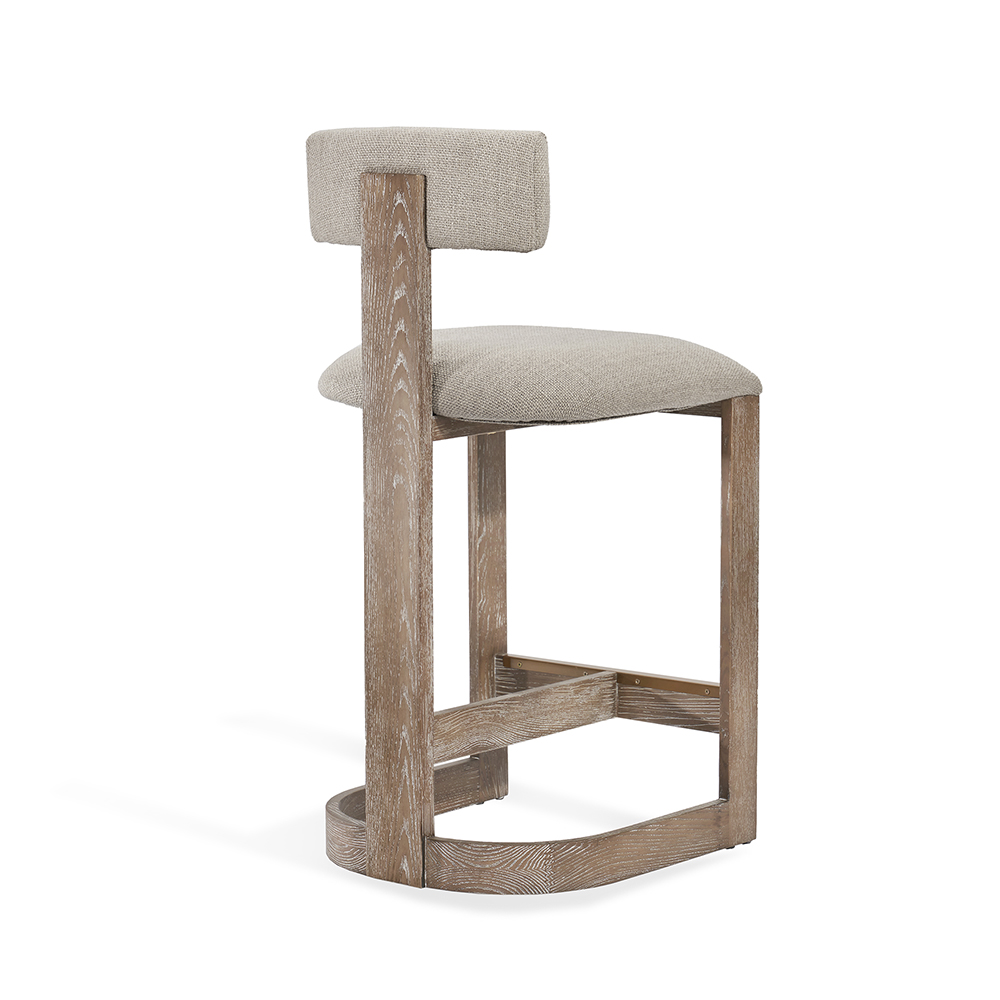 Bold and minimalist, the Brooklyn Counter Stool features an autumn brown wood frame with statement-making striations. Custom fabric selection available.