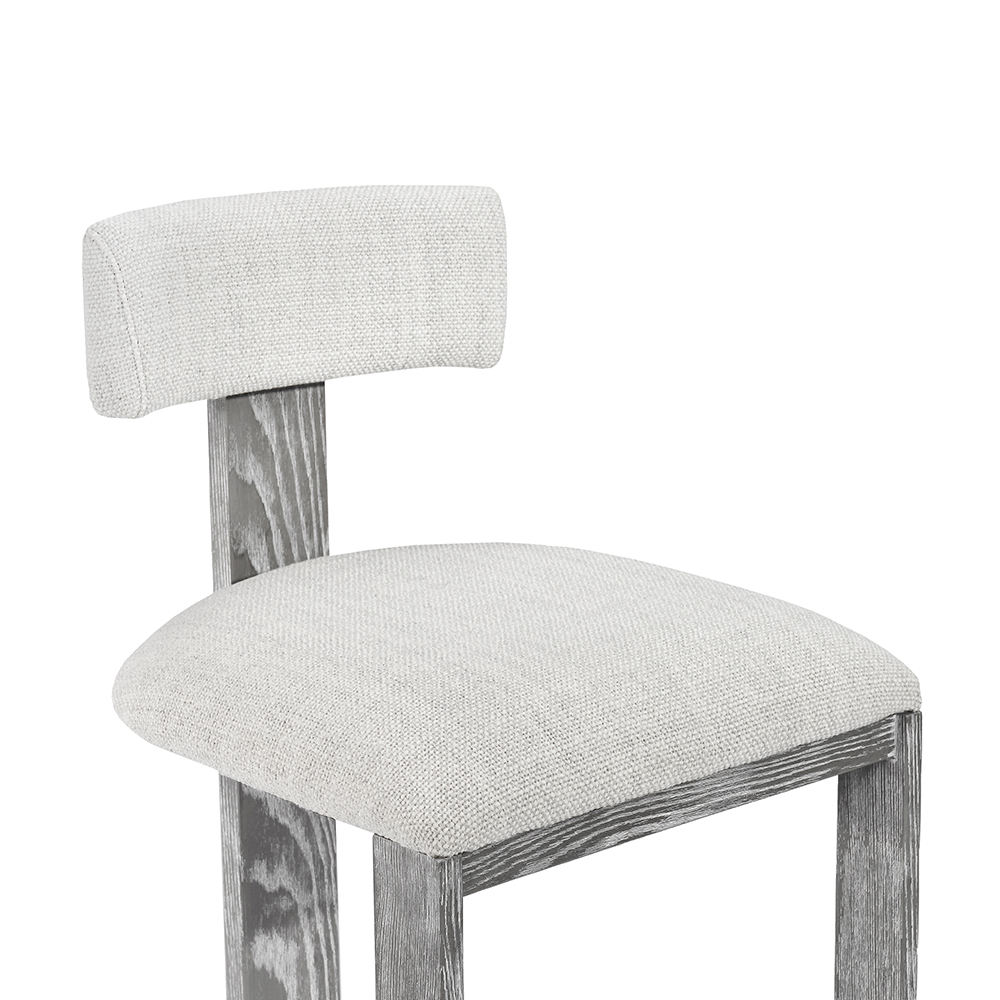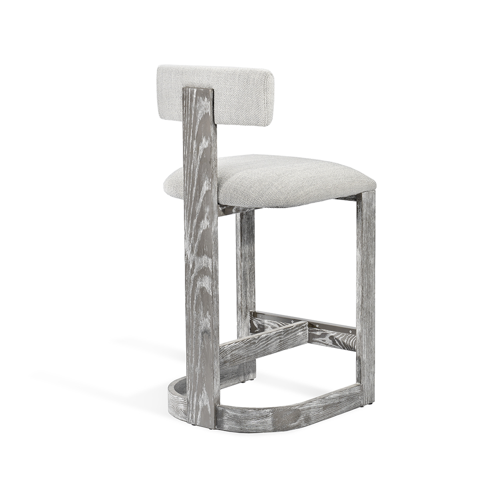 Bold and minimalist, the Brooklyn Counter Stool features a grey-wash wood frame with statement-making striations. Custom fabric selection available.