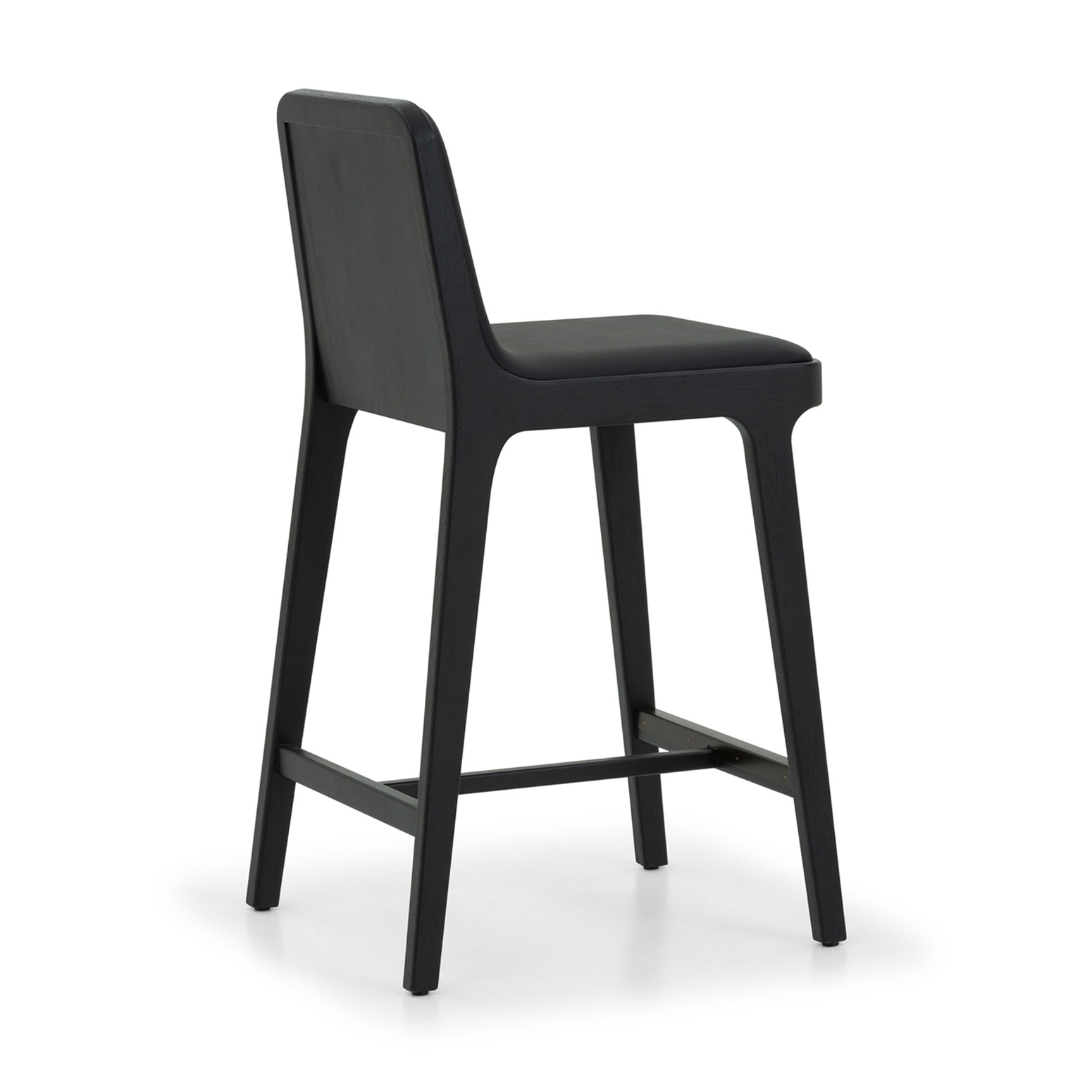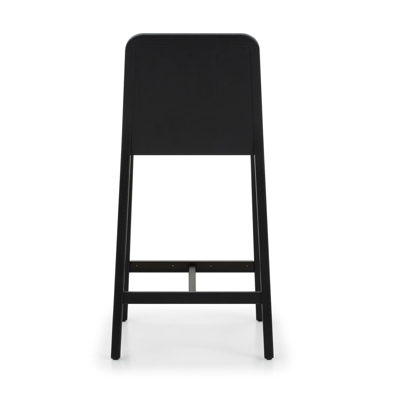 Crafted of oak in a matte black finish, upholstered in your preferred covering along with metal foot-rail in a dark bronze, the Florent Counter Stool is sleek and super chic, but still warm and inviting.