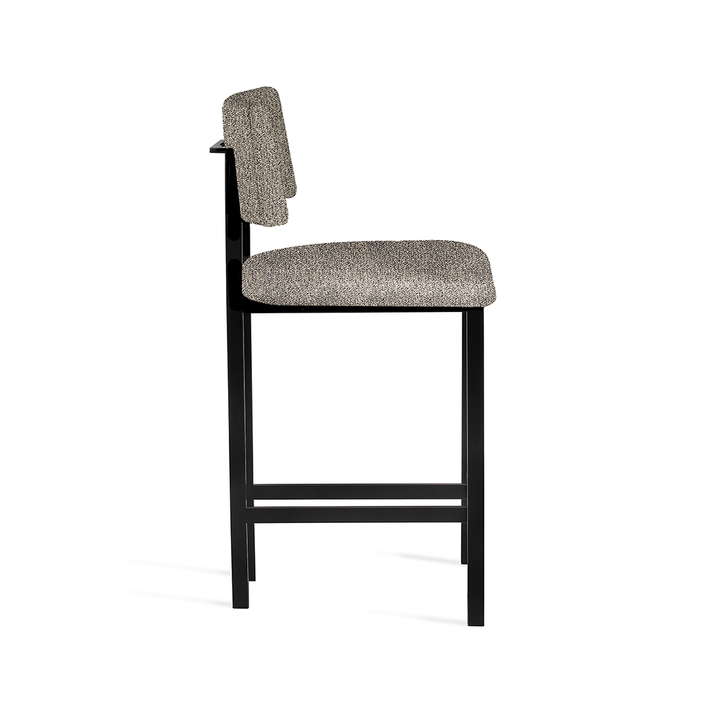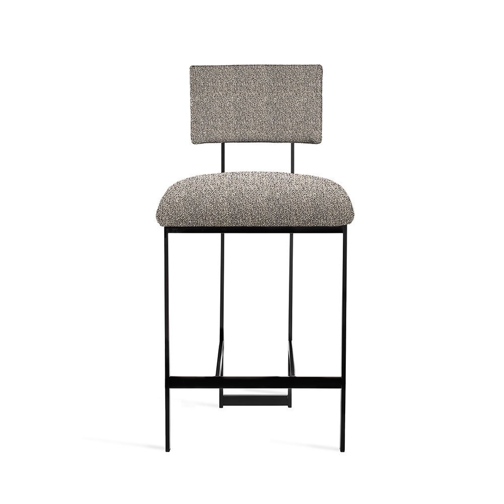 Thanks to a bold geometric stainless steel base in a matte black finish, the Landon II Counter Stool makes a fabulous statement. Custom fabric selection available.