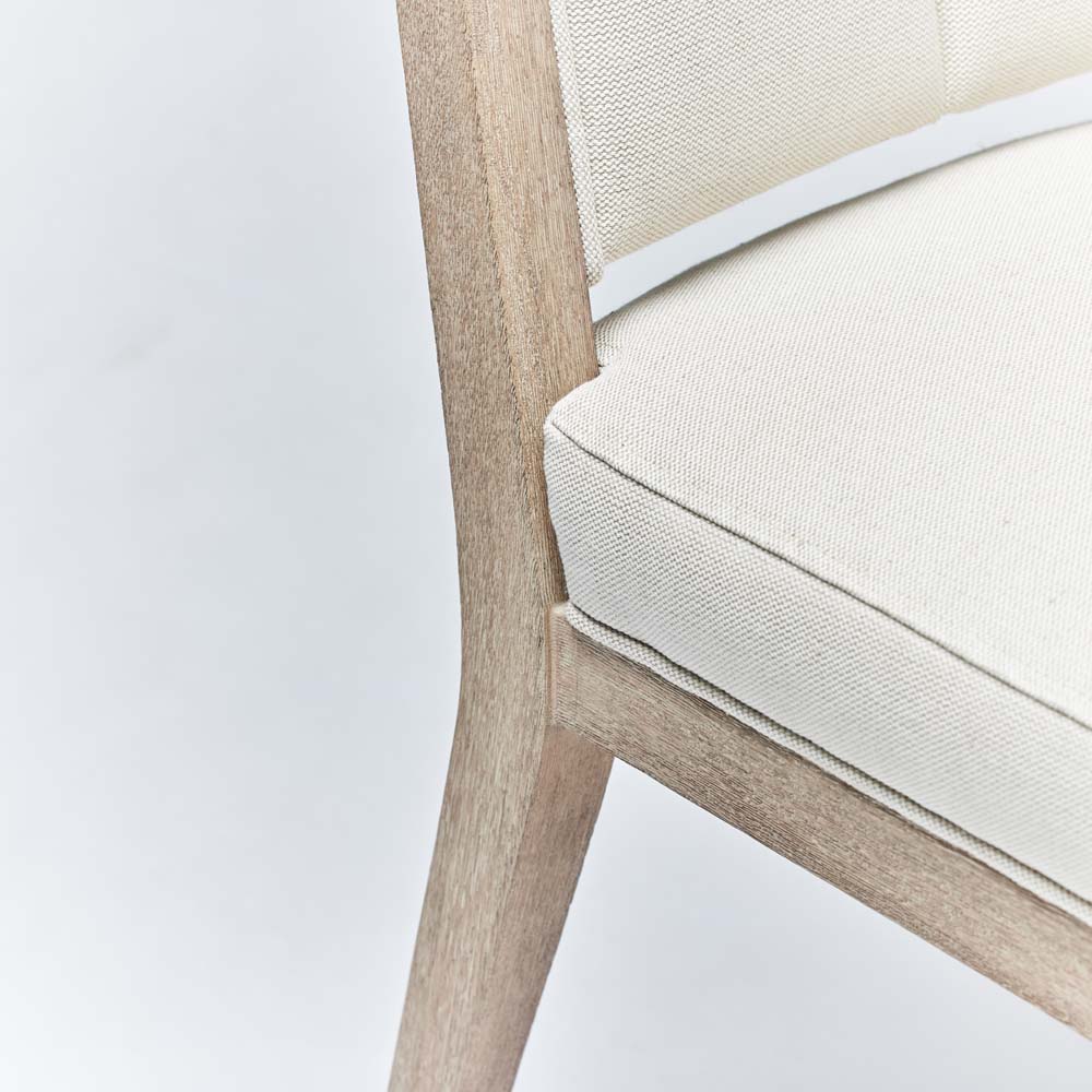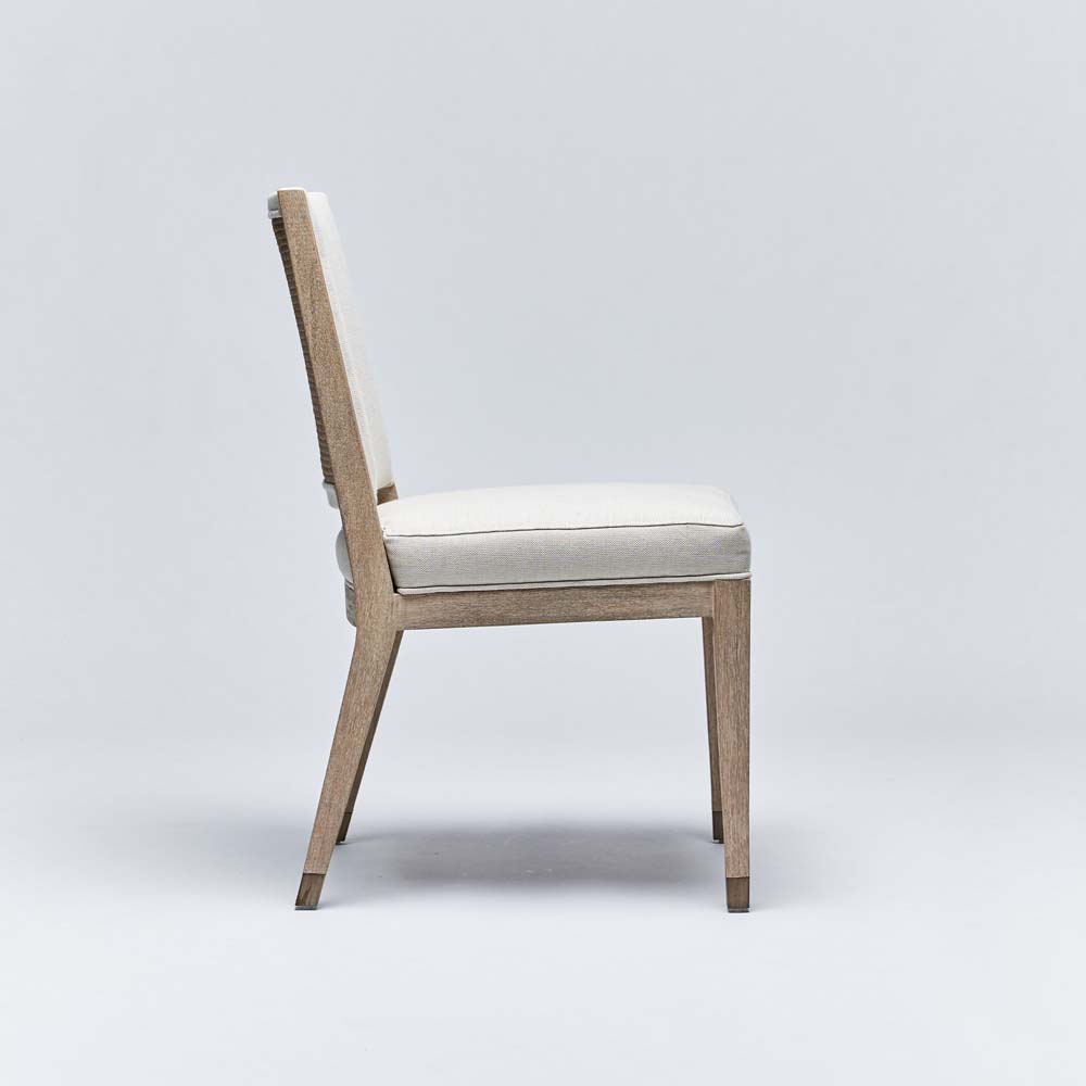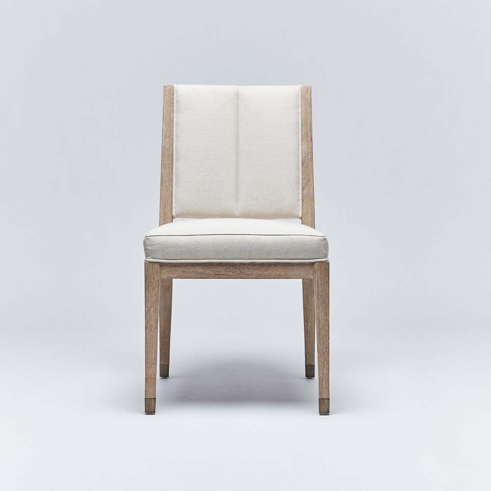 So easy and so flexible, the Largo Dining Chair features a white ceruse mahogany frame and dark antique brass finished fittings. Custom fabric selection available.