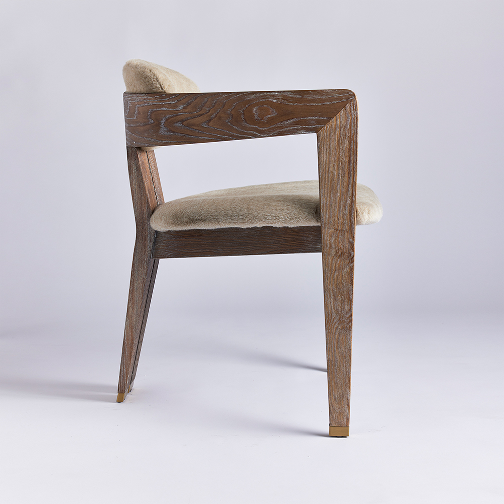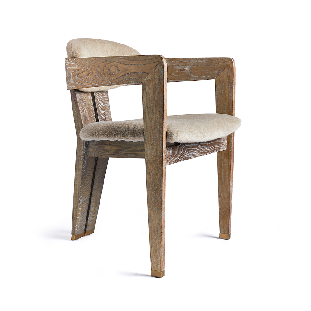 With sleek lines and a clean silhouette, the autumn brown ash frame makes the Maryl Dining Chair a stunner. Custom fabric selection available.