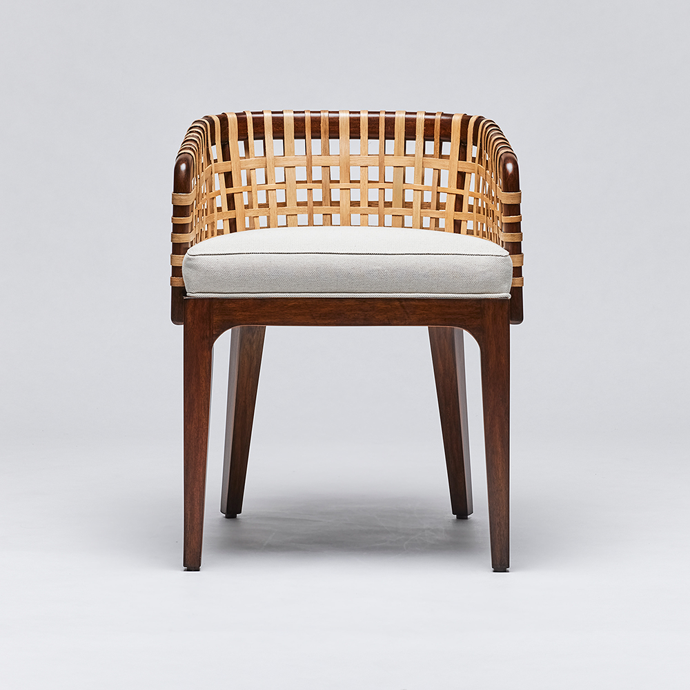 Featuring a rich chestnut mahogany frame contrasted with natural rattan, the Palms Arm Chair is the meeting of sophistication and organic integrity.