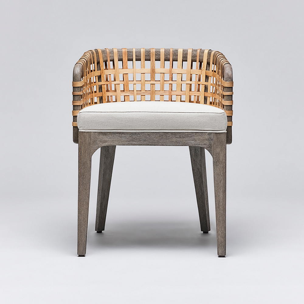 Featuring a super-chic grey ceruse wood frame contrasted with natural rattan, the Palms Arm Chair is the meeting of sophistication and organic integrity.
