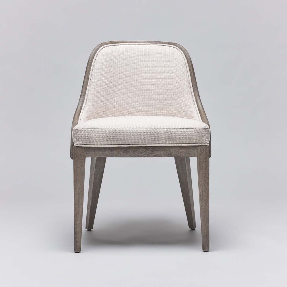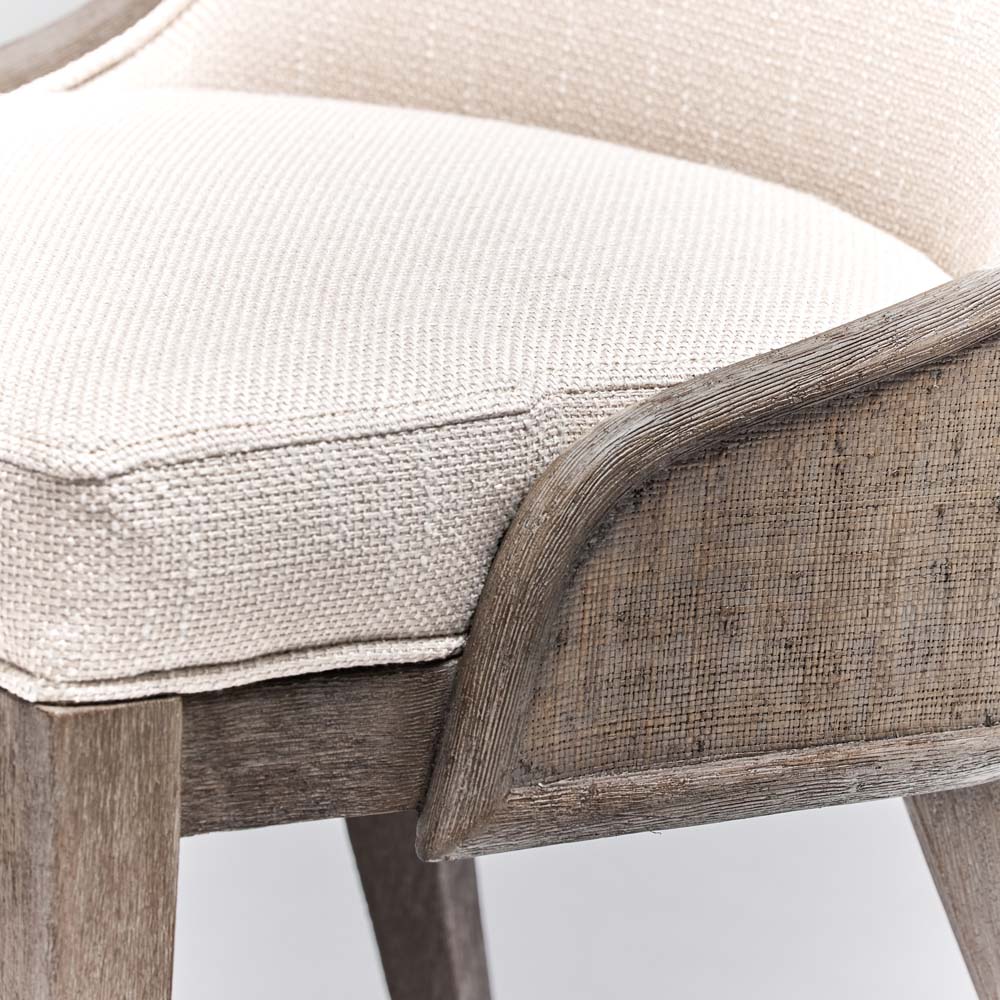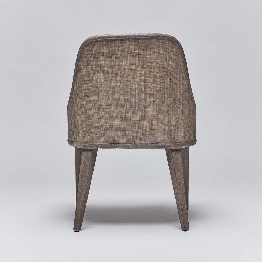 Bringing natural flair to an elegant seating option, the Siesta Dining Chair features raffia cane surrounding a grey ceruse mahogany frame.