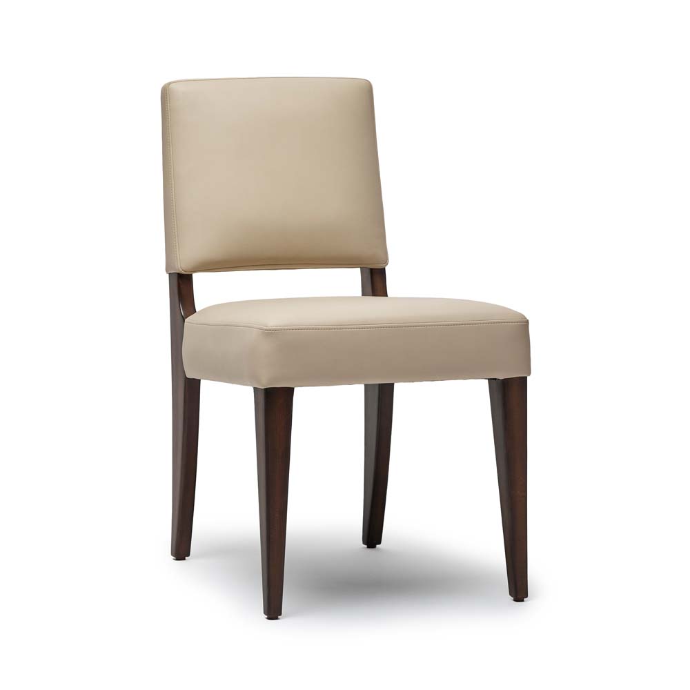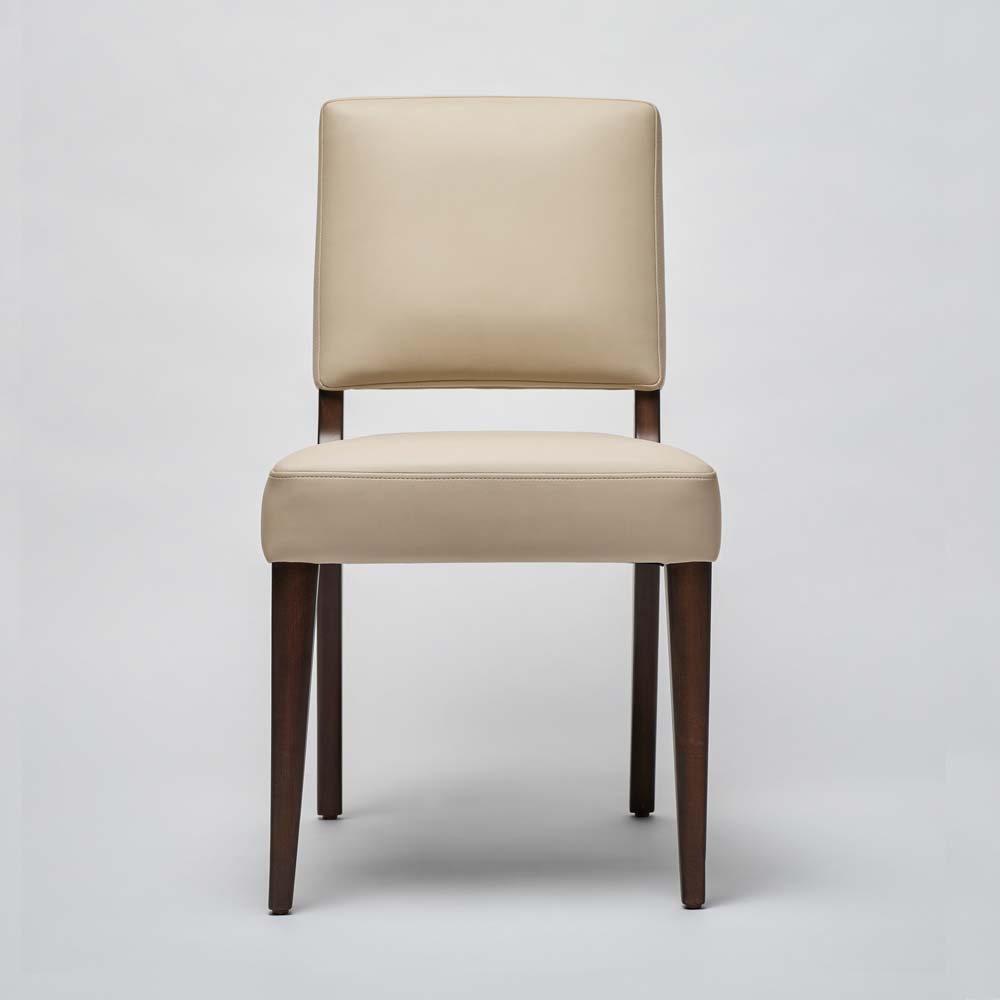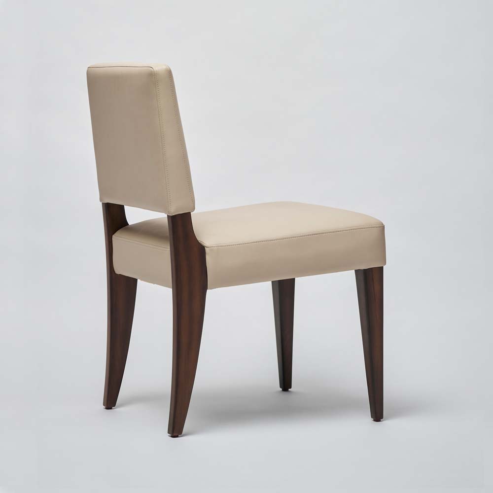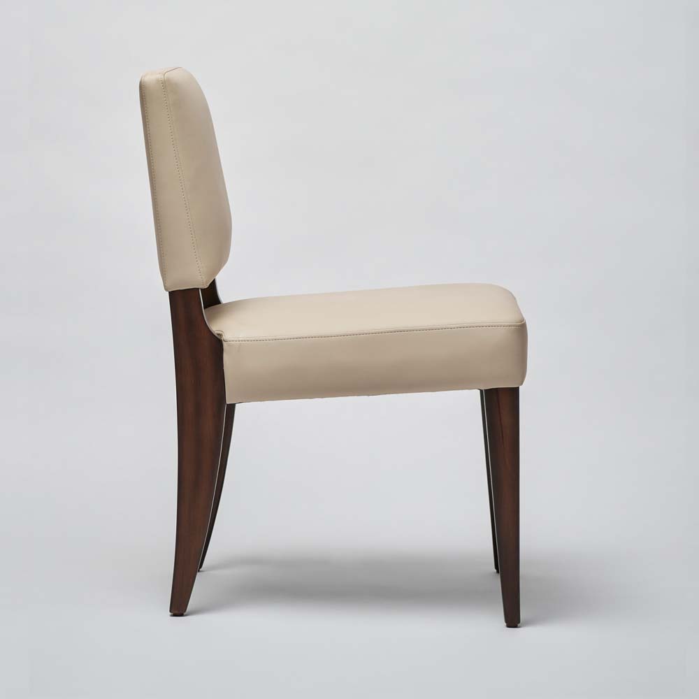 Modern and classic, the clean lines of the Grafton Dining Chair are perfectly paired with its walnut stained wood frame and custom upholstery.