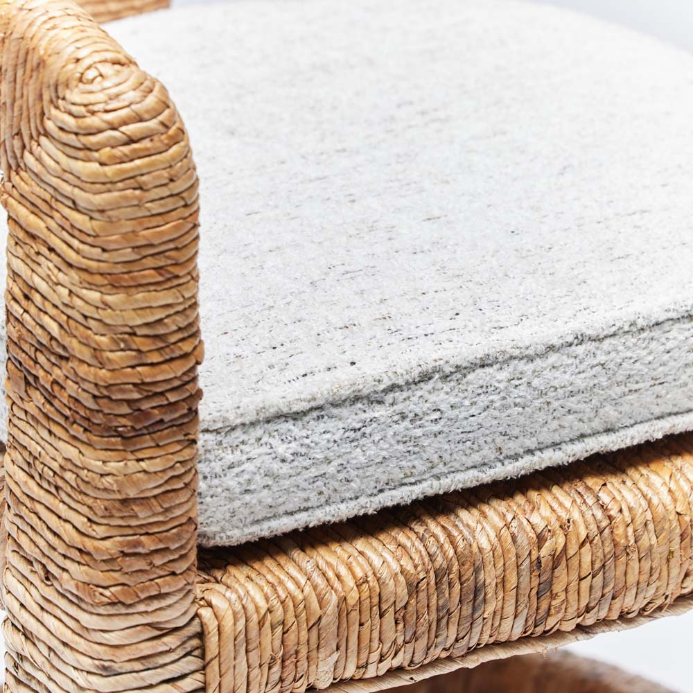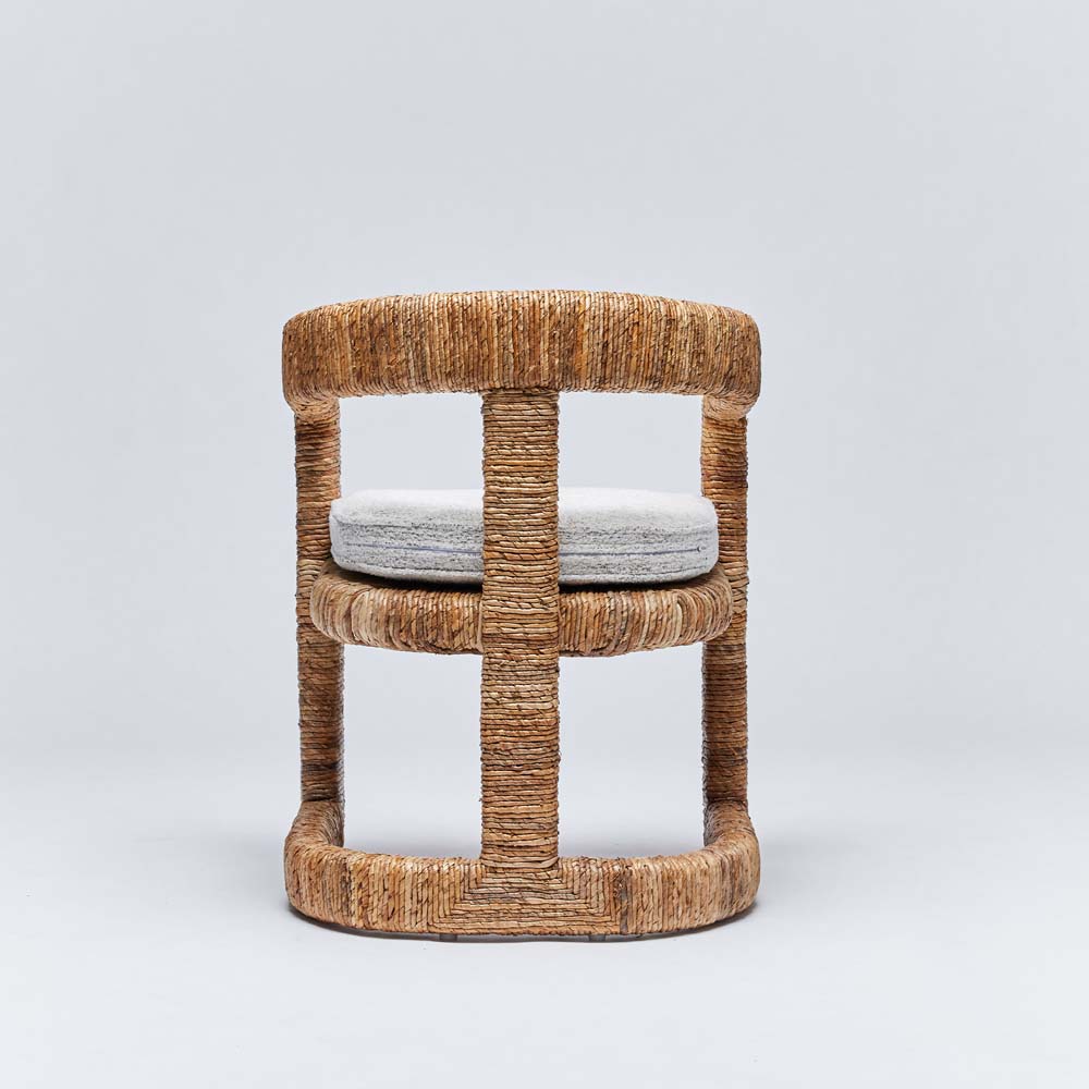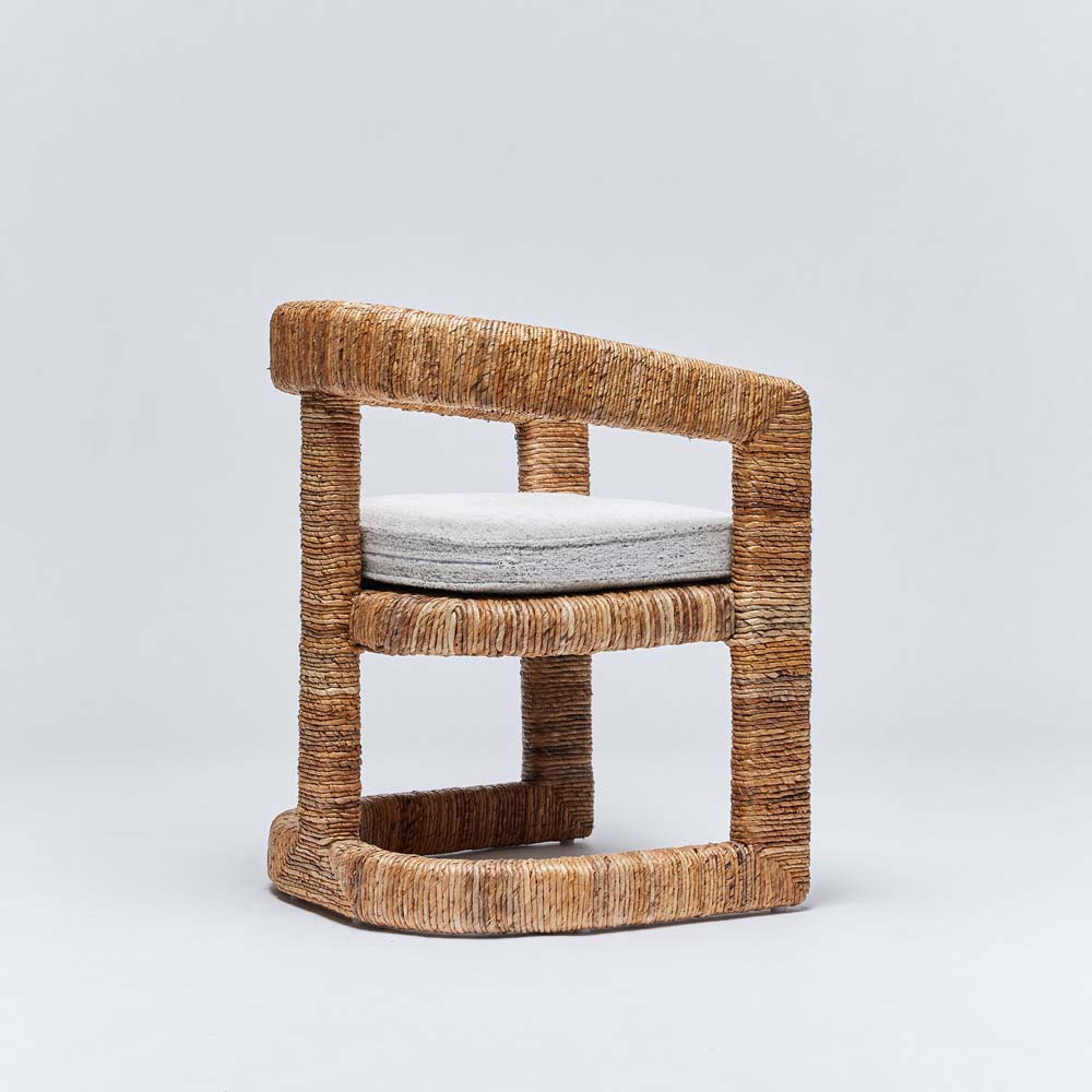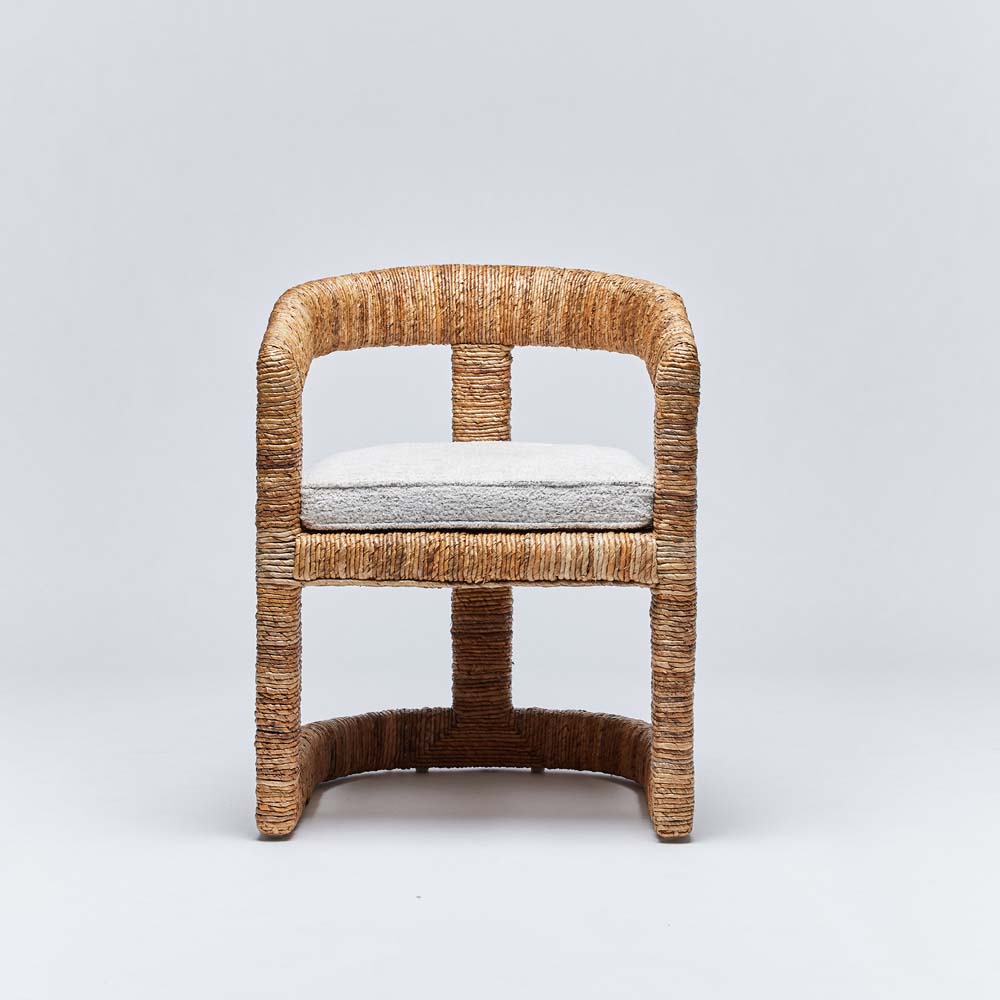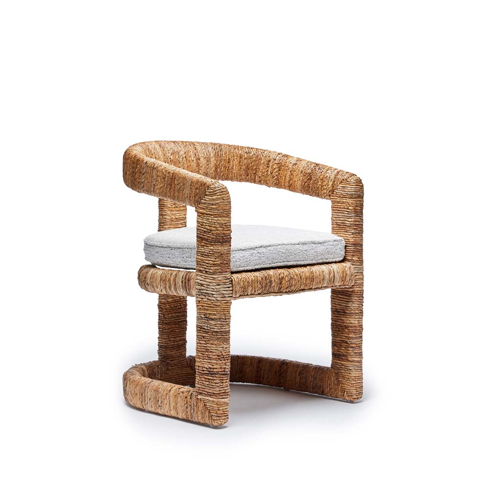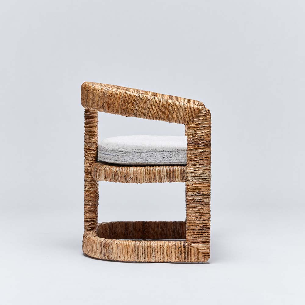 The unique, rich texture of banana bark in a light satin finish lends a truly organic, natural feel to the Laguna Dining Chair. Custom fabric for the cushion makes it truly unique.