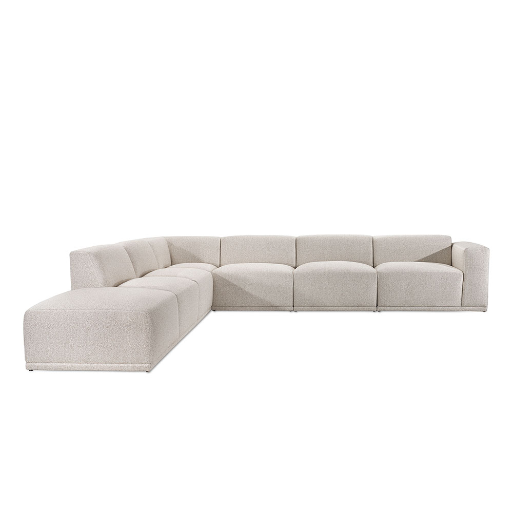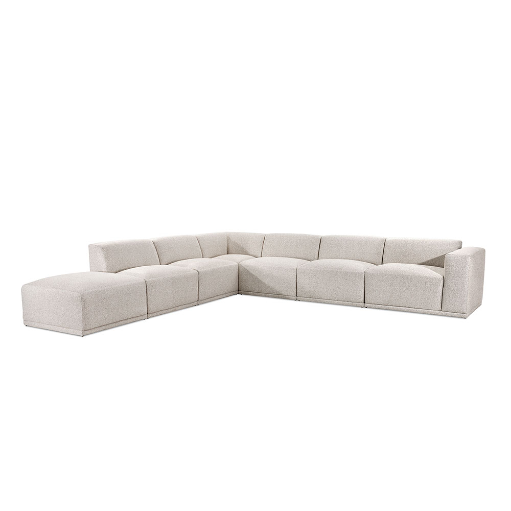 Comfort meets mod in the form of the Cassis Sectional. All hardwood frame with interlocking construction. Advanced unidirectional web seating suspension. Tight seat and back with premium polyurethane foam and 100% polyester fiber. Available in Interlude Home Custom Upholstery fabrics, COM, or COL.