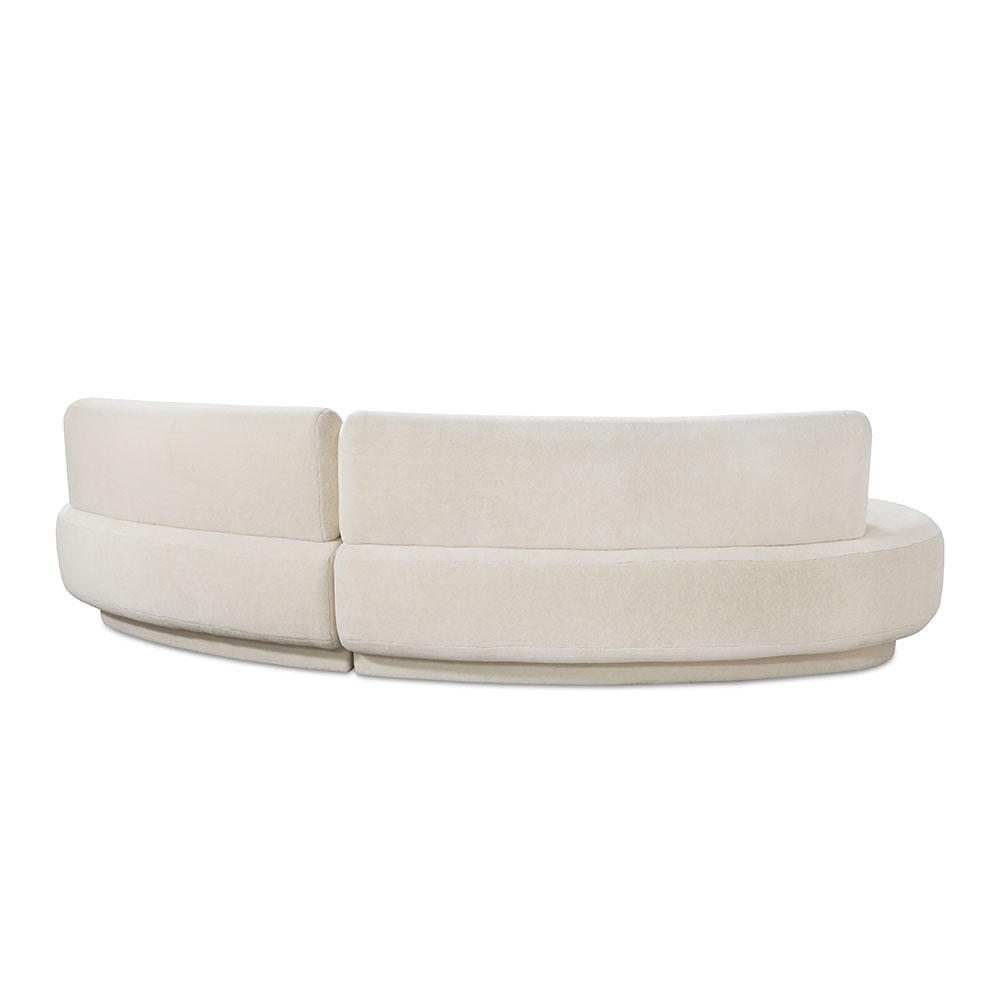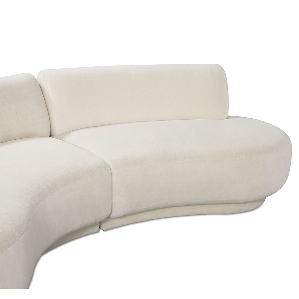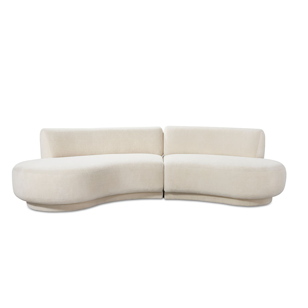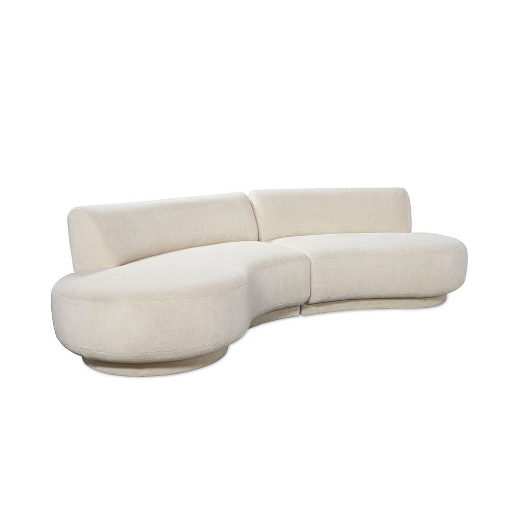 Stylish and sophisticated, the Nuage Sectional makes a big impression. All hardwood frame with interlocking construction. Advanced unidirectional web seating suspension. Tight seat cushions and tight back cushions with premium polyurethane foam and 100% polyester fiber. Upholstered plinth. Available in Interlude Home Custom Upholstery fabrics, COM, or COL. Available in both left and right configurations.