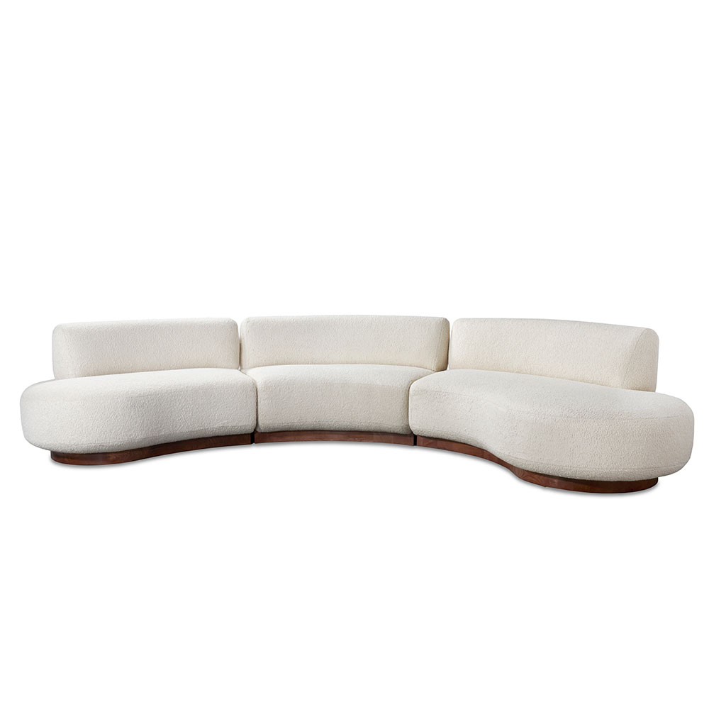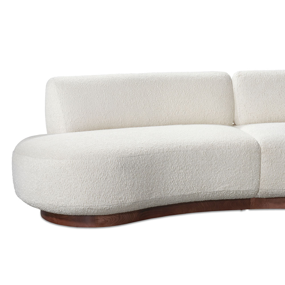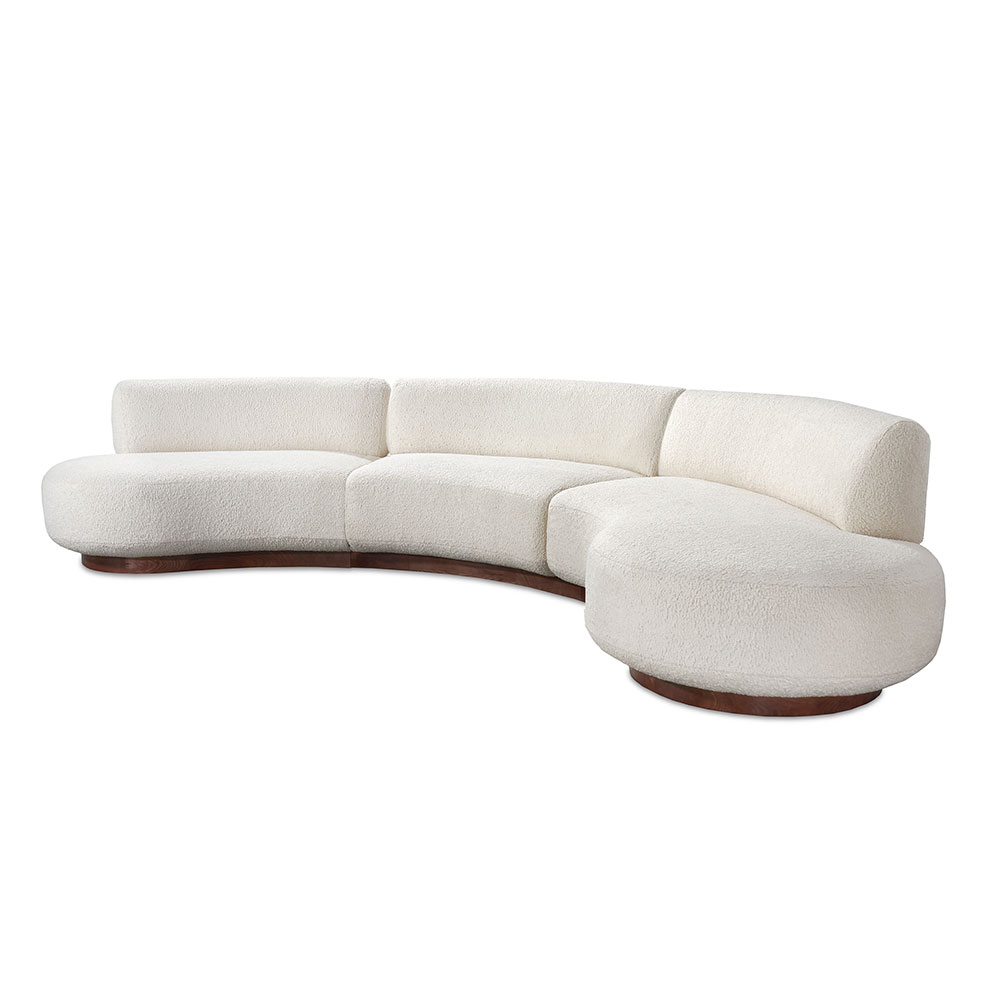 Stylish and sophisticated, the Nuage Sectional makes a big impression. All hardwood frame with interlocking construction. Advanced unidirectional web seating suspension. Tight seat cushions and tight back cushions with premium polyurethane foam and 100% polyester fiber. Wood plinth available in various finishes. Available in Interlude Home Custom Upholstery fabrics, COM, or COL. Available in both left and right configurations.