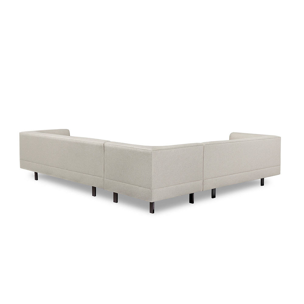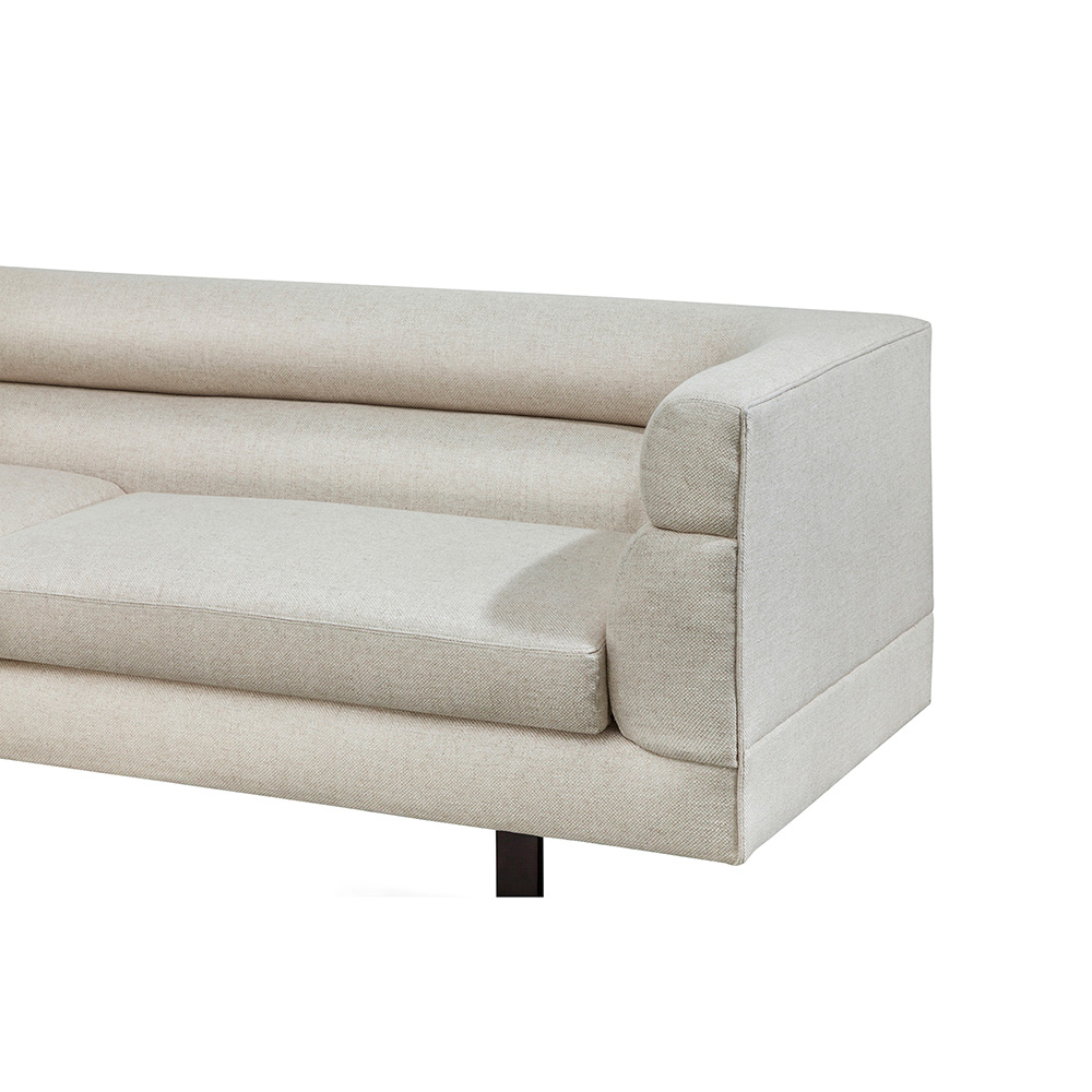 Luxuriant and enveloping, the Ornette Sectional is a stunning addition to any space. All hardwood frame with interlocking construction. Advanced unidirectional web seating suspension. Loose seat cushion and tight back with premium polyurethane foam and 100% polyester fiber. Stainless steel leg with bronze finish. Available in Interlude Home Custom Upholstery fabrics, COM, or COL.