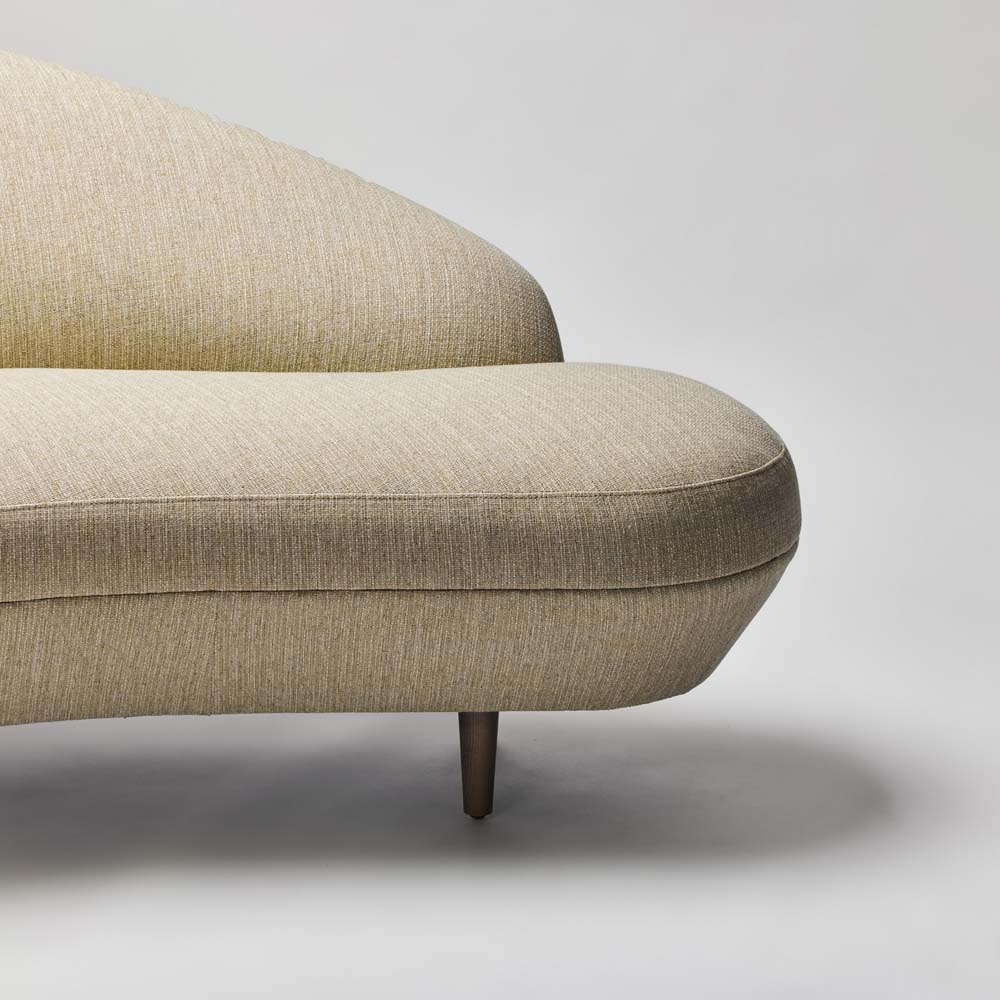 The sculptural curves of the Bardoux Left Sofa deliver sophistication and glamorous style wherever it is placed. All hardwood frame with interlocking construction. Advanced unidirectional web seating suspension. Tight seat and back with premium polyurethane foam and 100% polyester fiber. Available with wood finish legs and custom fabric selection. Item is available in both left and right configurations.