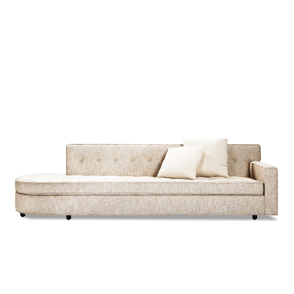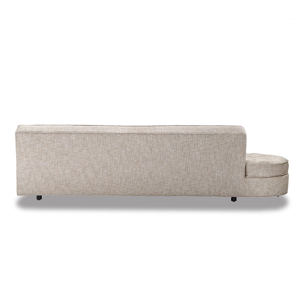 Featuring a tufted back and a streamlined silhouette, the Dakota Grand Right Sofa makes a lasting impression. All hardwood frame with interlocking construction. Advanced unidirectional web seating suspension. Loose seat and tight back cushions with premium polyurethane foam and 100% polyester fiber. Available in Interlude Home Custom Upholstery fabrics, COM, or COL. Available in both left and right configurations.