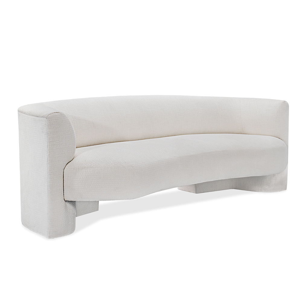 Curvy and captivating, the Esme Sofa is swoon-worthy. All hardwood frame with interlocking construction. Advanced unidirectional web seating suspension. Tight seat and back with premium polyurethane foam and 100% polyester fiber. Available in Interlude Home Custom Upholstery fabrics, COM, or COL.