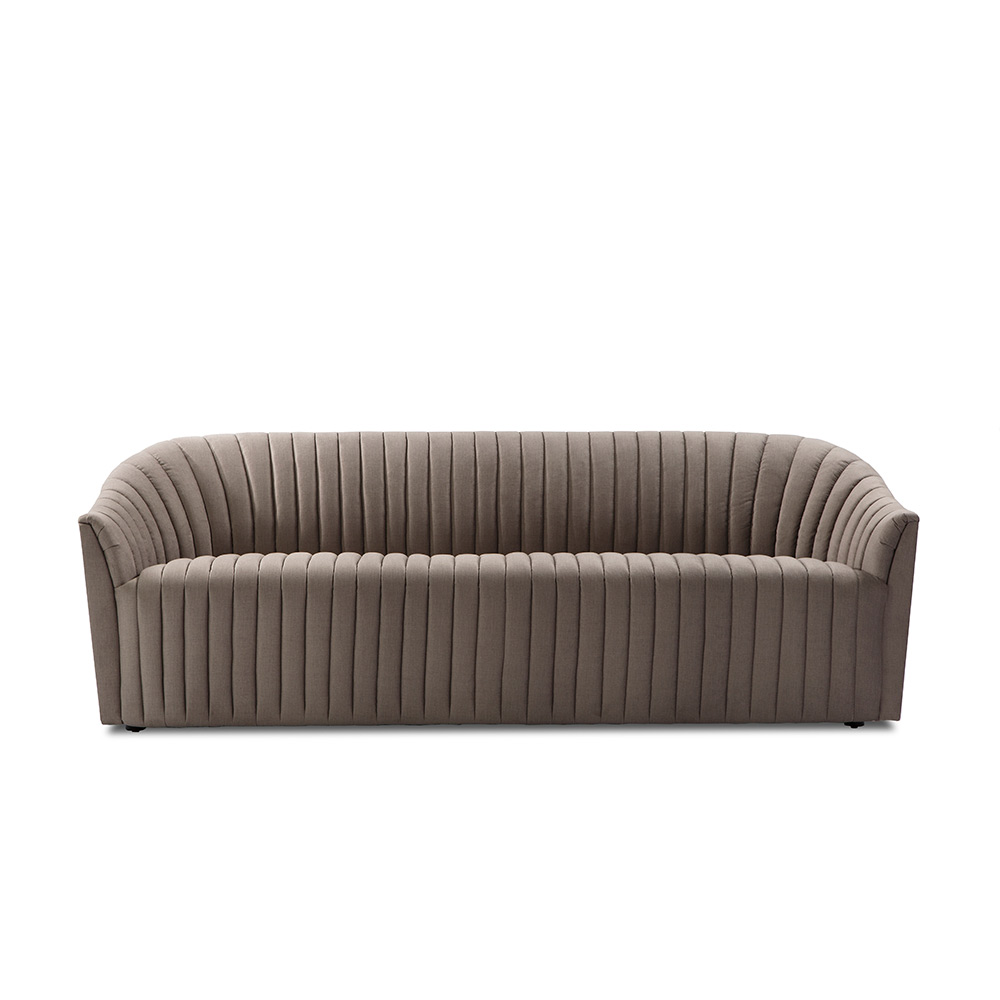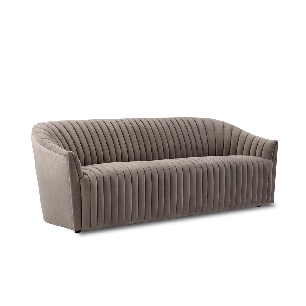 The Channel Sofa exudes subtle style and sophistication. All hardwood frame with interlocking construction. Advanced unidirectional web seating suspension. Tight seat and back with premium polyurethane foam and 100% polyester fiber. Available in Interlude Home Custom Upholstery fabrics, COM, or COL.