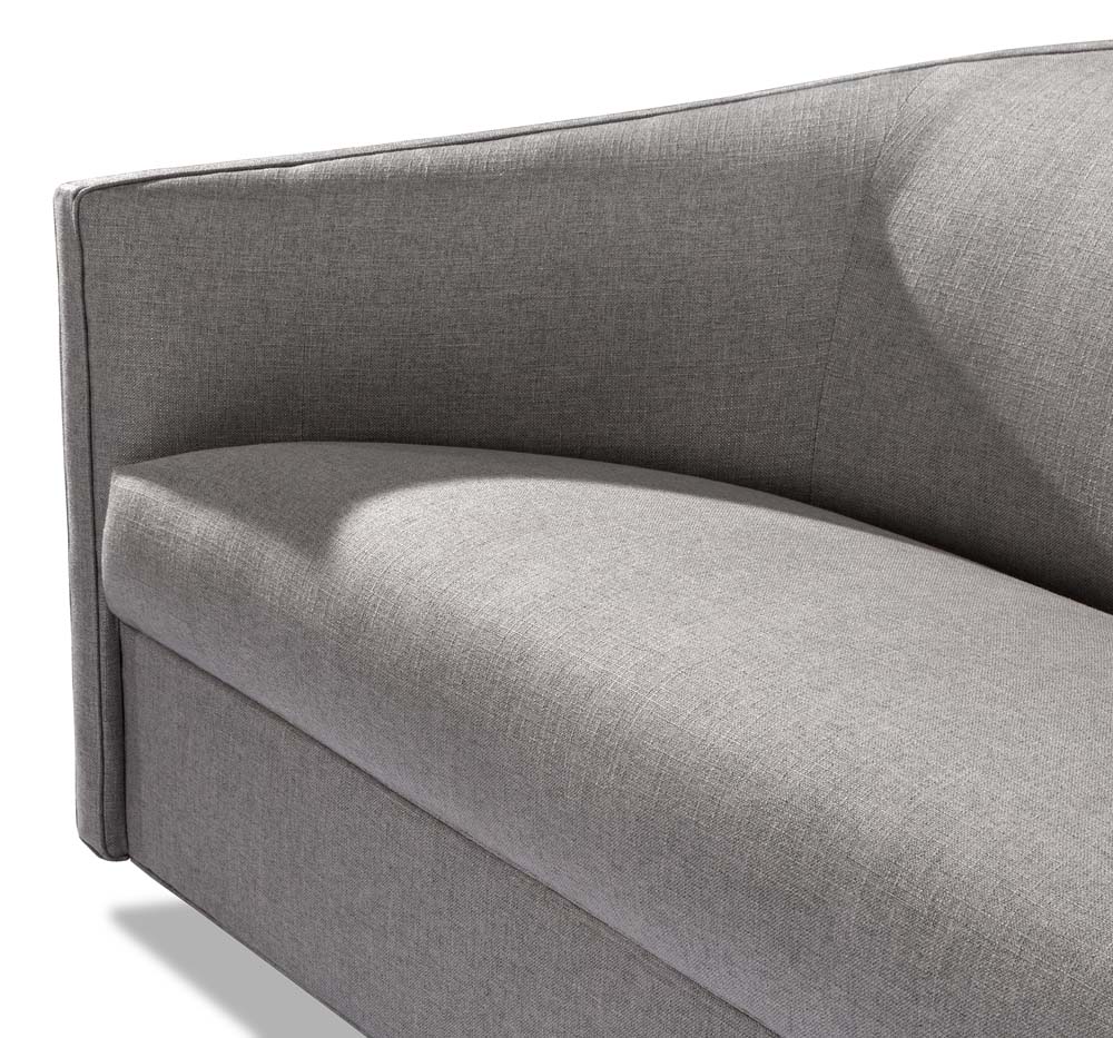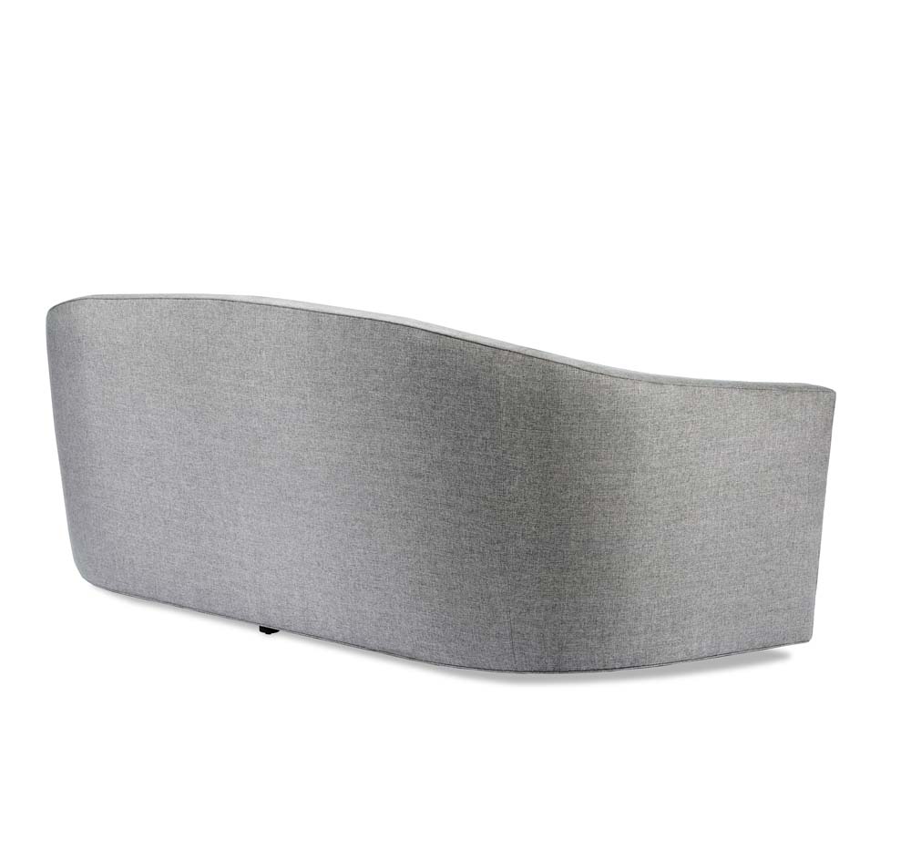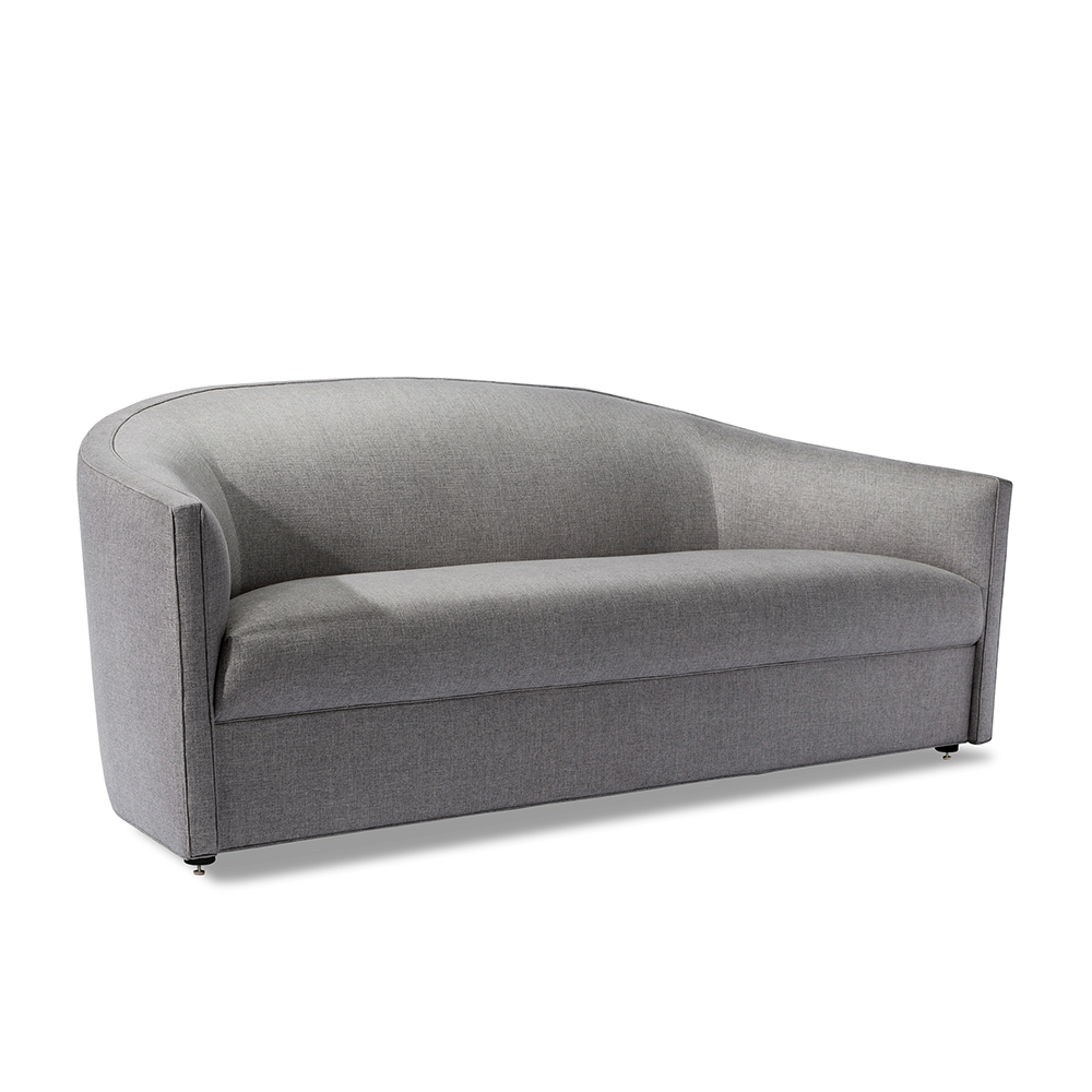 With an exotic silhouette, the bold Turin Sofa belies its American-made provenance and comes in a variety of plush, neutral fabrics.