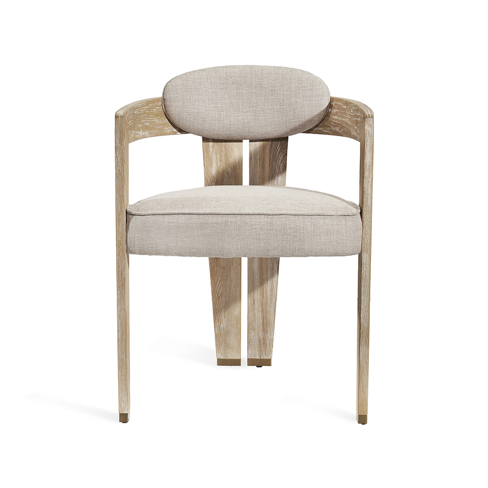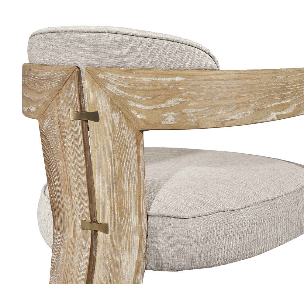 A heathered cream faux linen seat perfectly complements the whitewash finish of the Maryl II Dining Chair's wood frame.