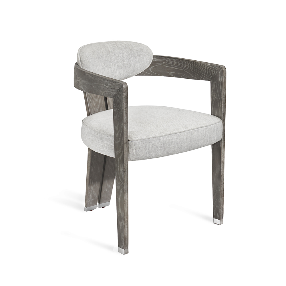 A heathered grey faux linen seat perfectly complements the grey wash finish of the Maryl II Dining Chair's wood frame.