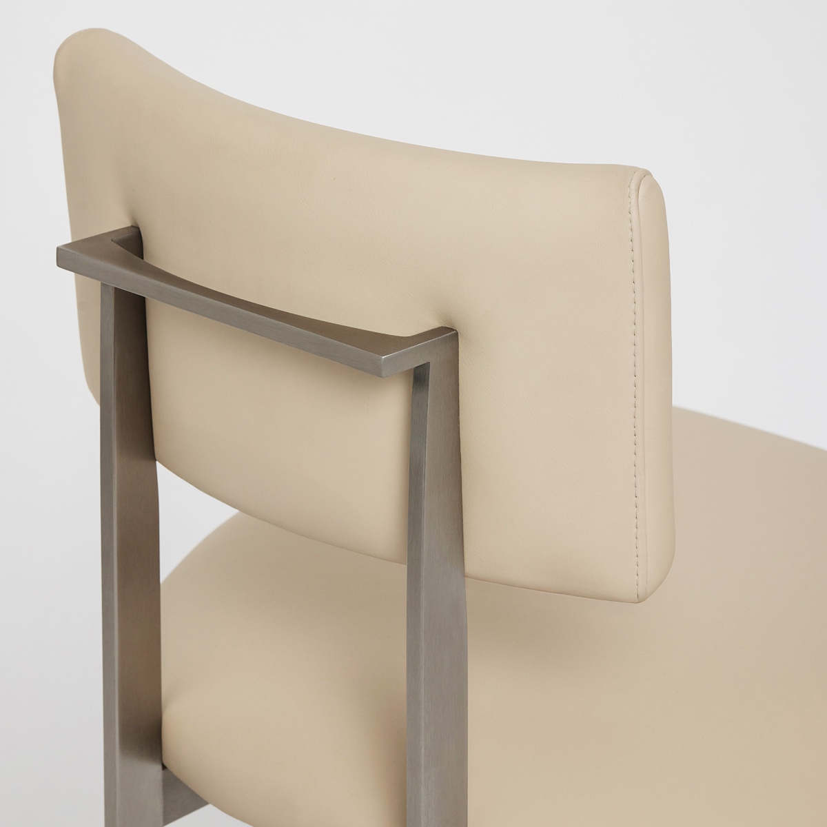 Thanks to a bold geometric stainless steel base in a brushed nickel finish, the Landon II Counter Stool makes a fabulous statement. Custom fabric selection available.