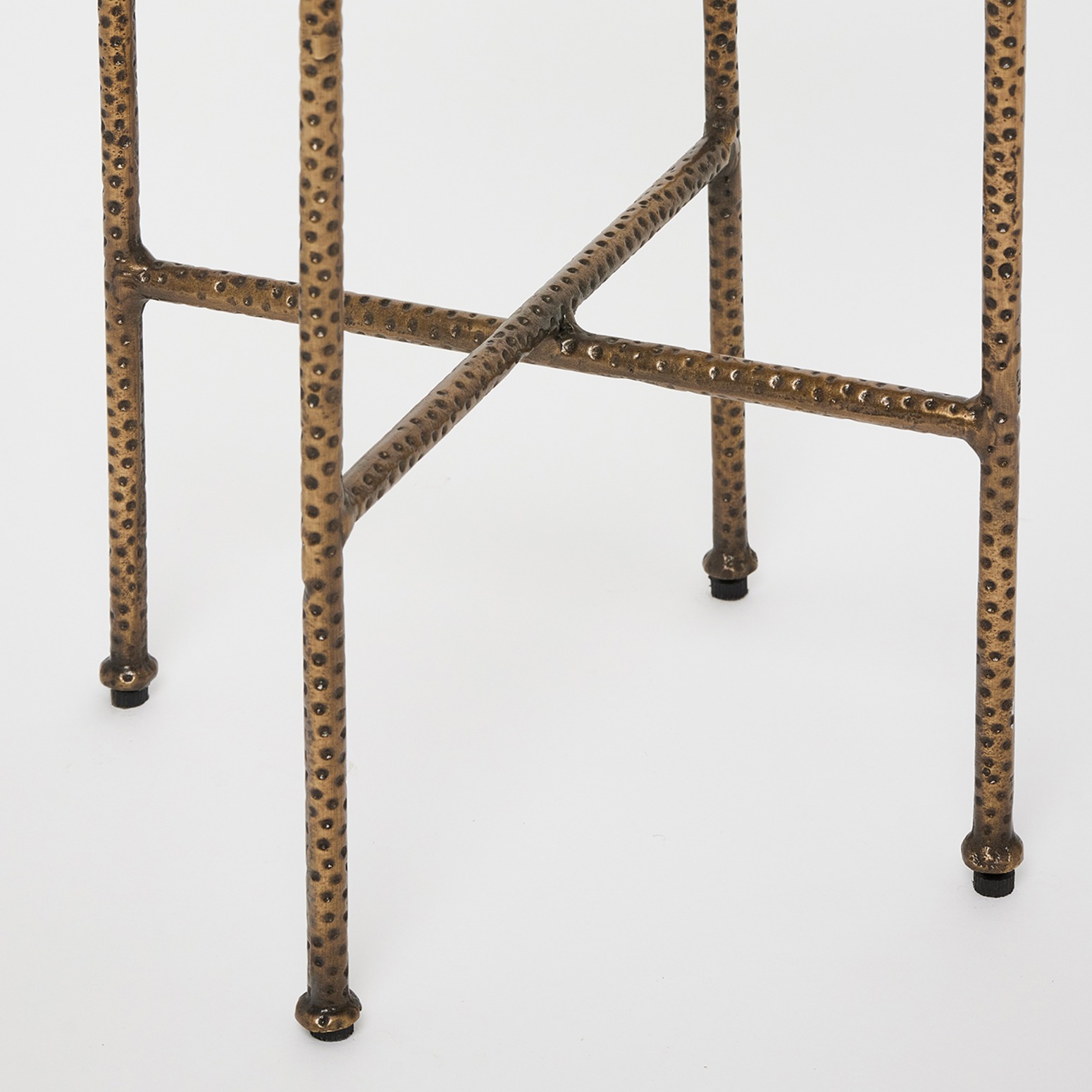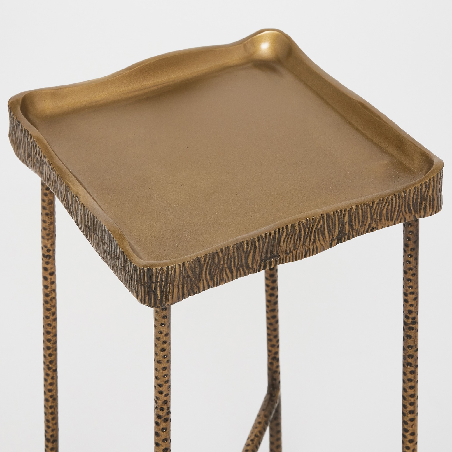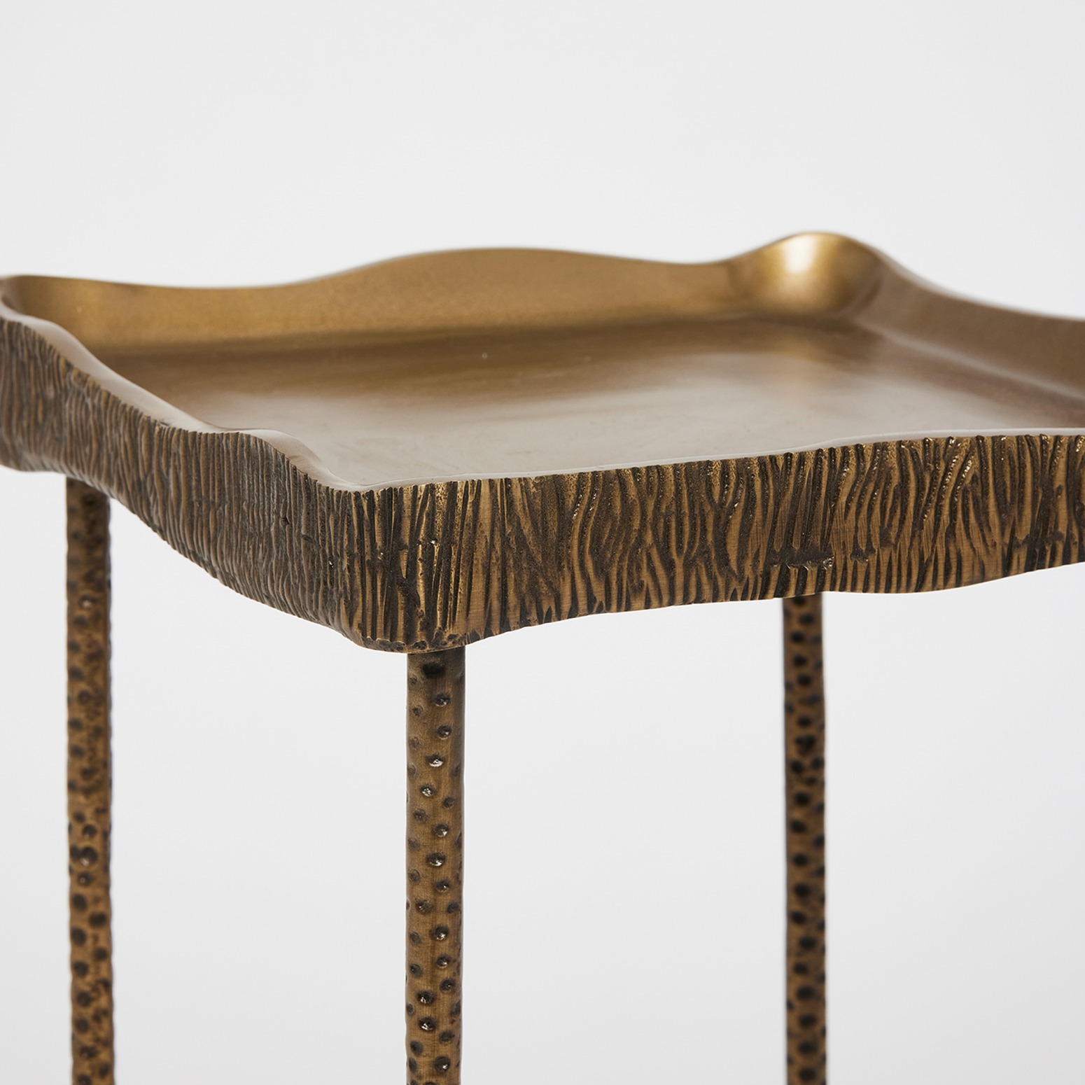 A statement maker that doesn't need to steal the spotlight, the versatile Zoe Drink Table is realized in iron in an antique bronze finish.