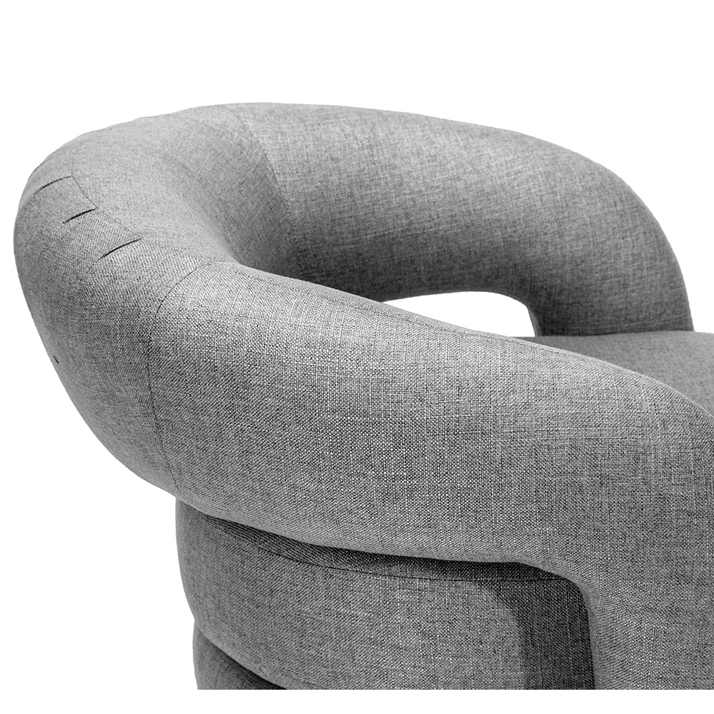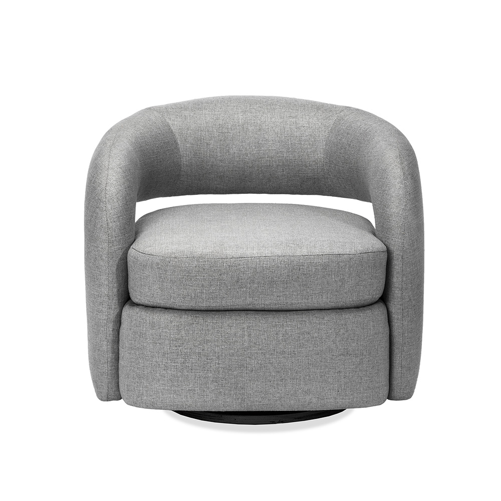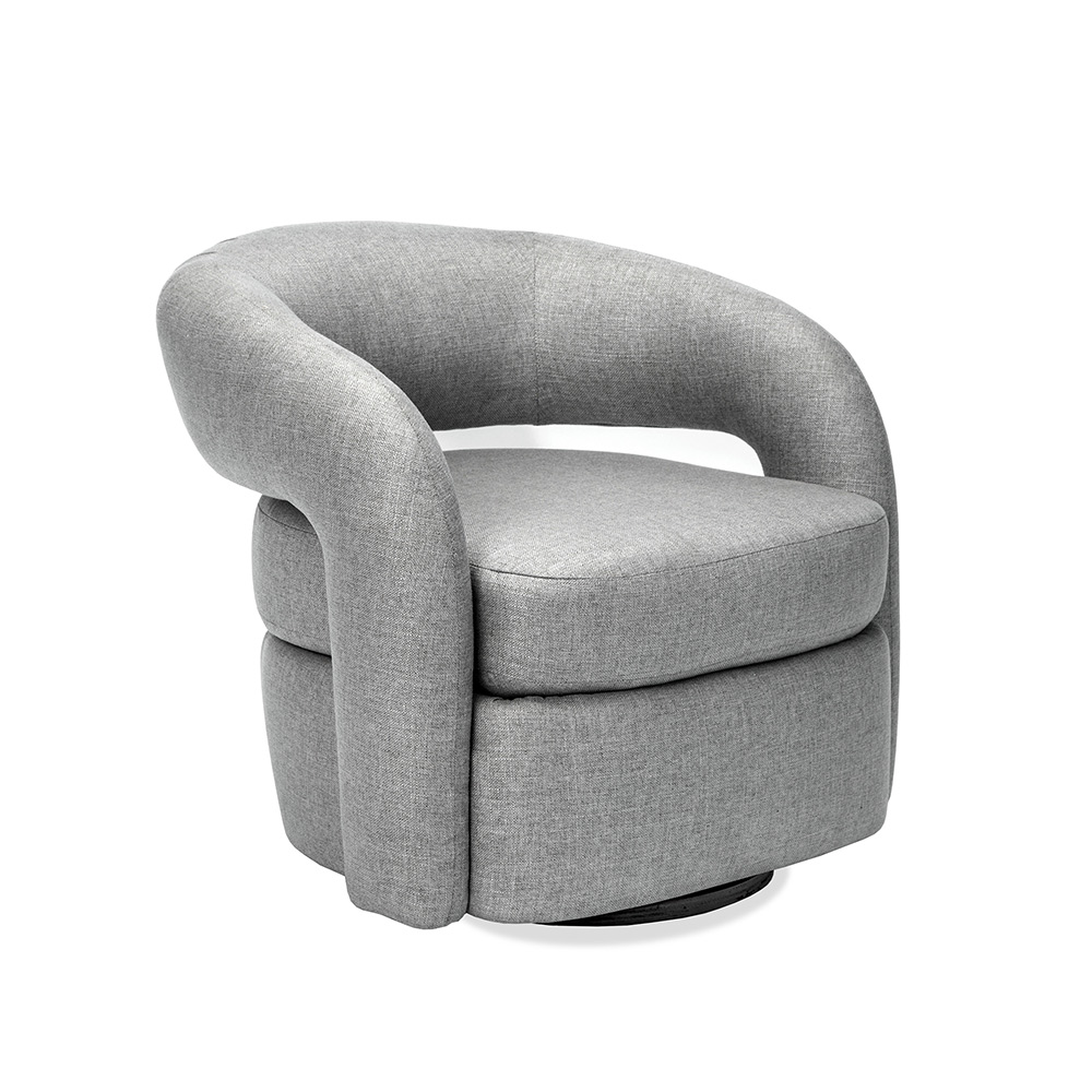 With an Art Deco feel, but totally contemporary, the Targa Chair brings so much sophisticated style wherever it's placed. All hardwood frame with interlocking construction. Advanced unidirectional web seating suspension. Tight seat cushions and tight back cushions with premium polyurethane foam and 100% polyester fiber. Swivel base. Available in Interlude Home Custom Upholstery fabrics, COM, or COL.