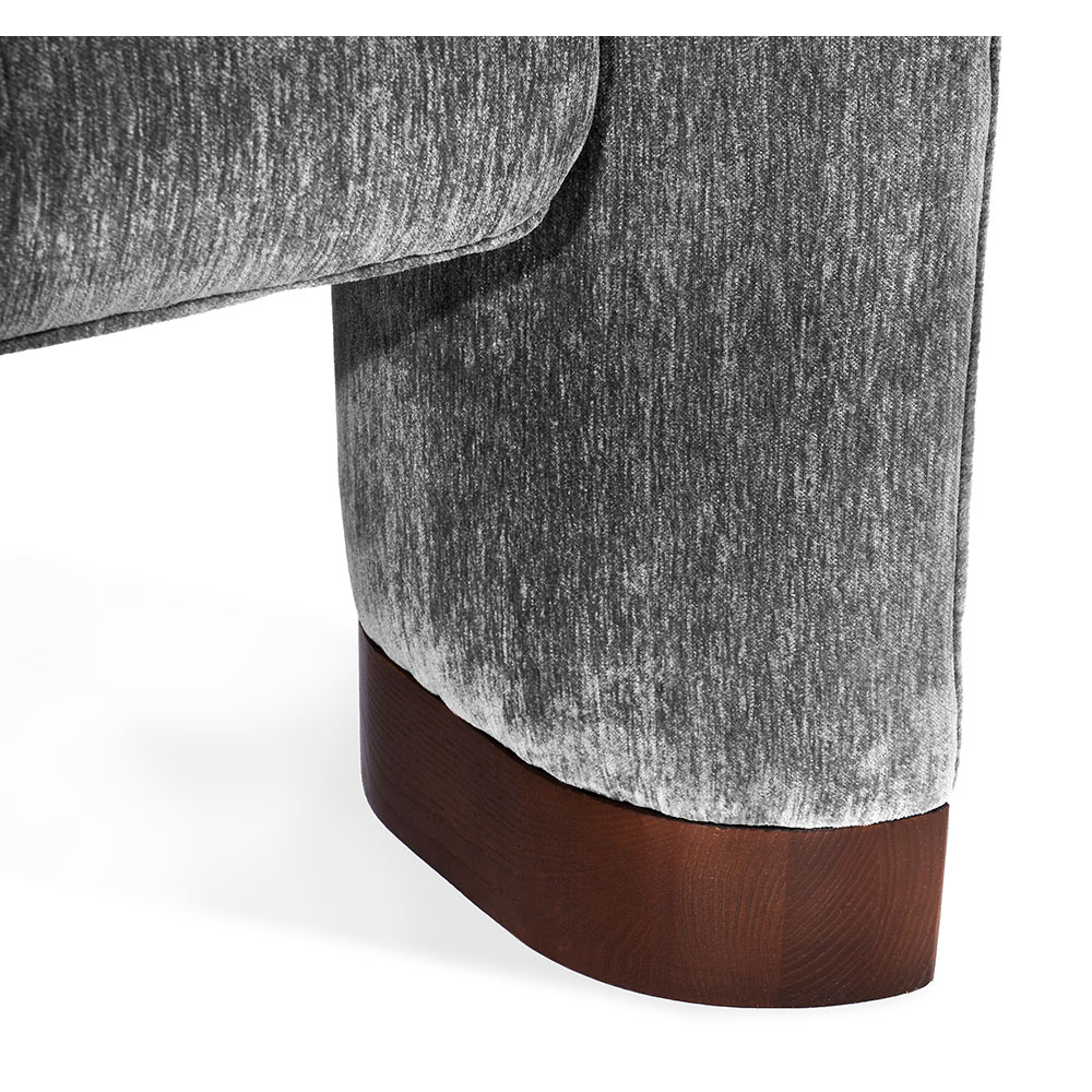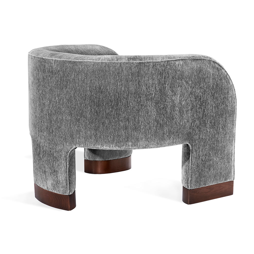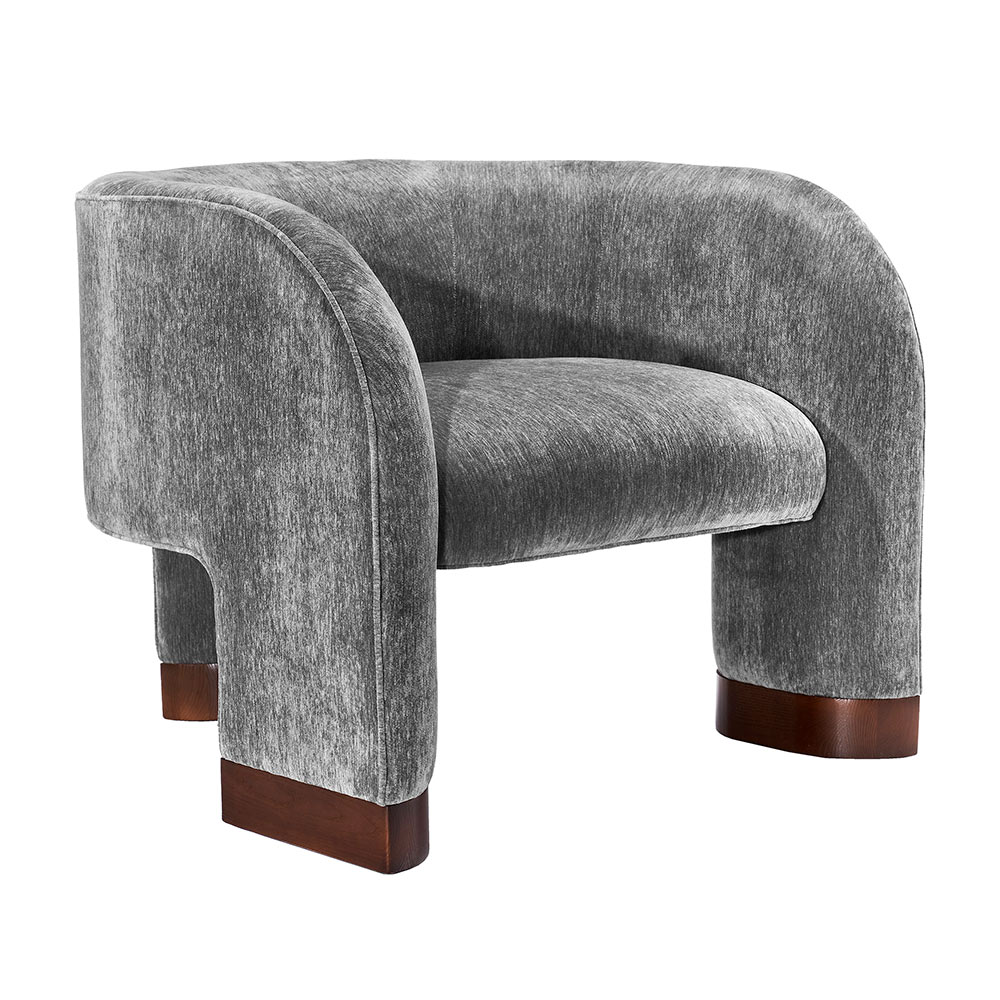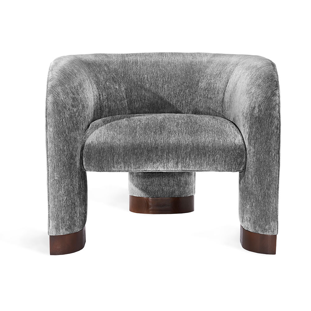 The Trilogy Chair is a luxurious option that delivers sophistication and glamorous style. All hardwood frame with interlocking construction. Advanced unidirectional web seating suspension. Tight seat cushion and tight back with premium polyurethane foam and 100% polyester fiber. Wood leg accents shown in walnut finish. Choice of metal or wood leg finish. Custom fabric selection available.